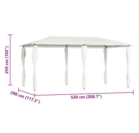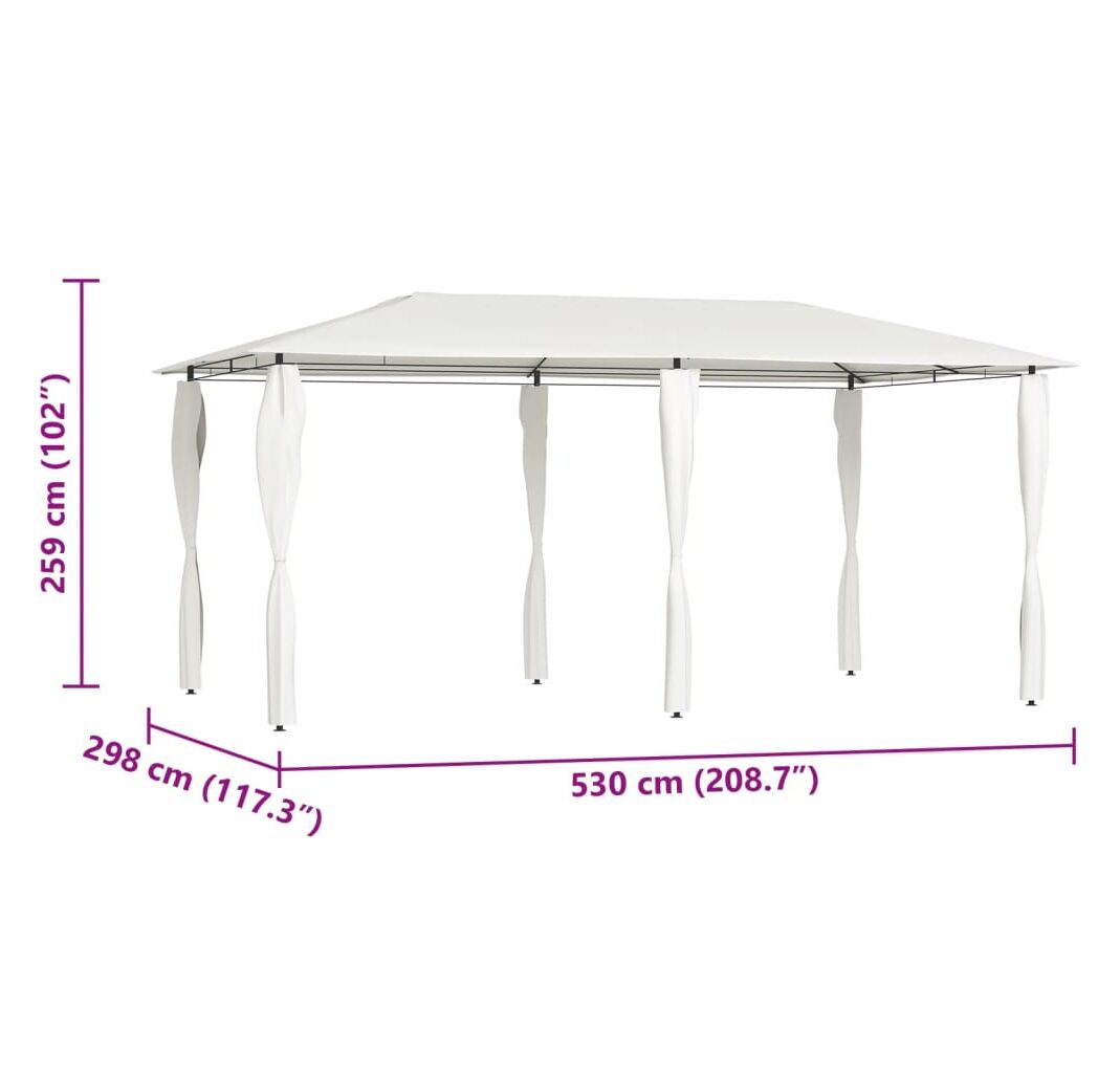 Acest pavilion are o construcție solidă din oțel, ceea ce îl face rezistent și robust, pentru utilizare în exterior. Acoperișul oferă protecție împotriva ploii și a soarelui arzător, astfel încât să vă puteți bucura de spațiul de exterior, fără griji.