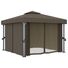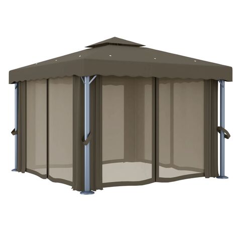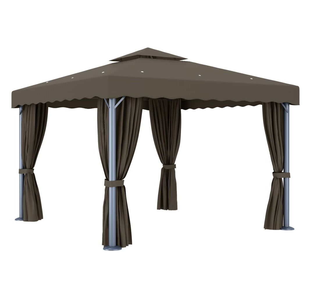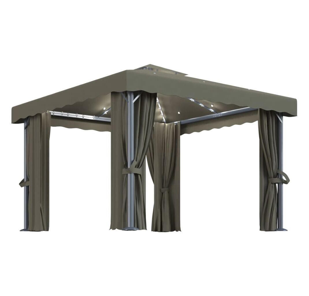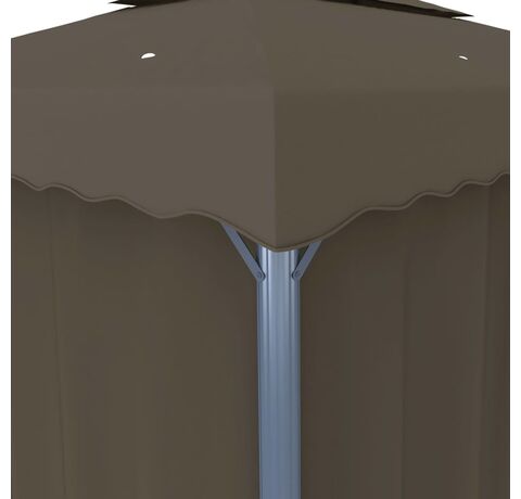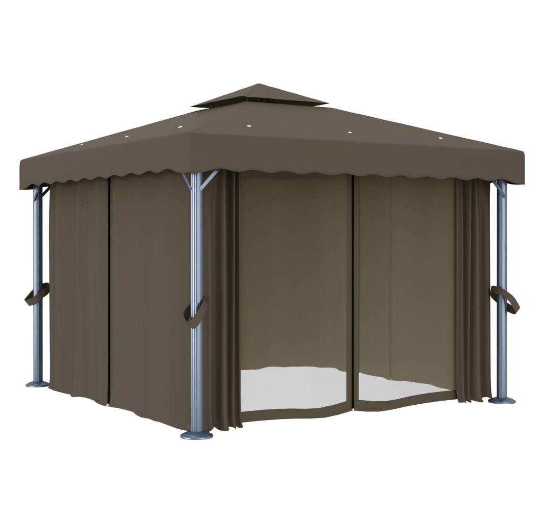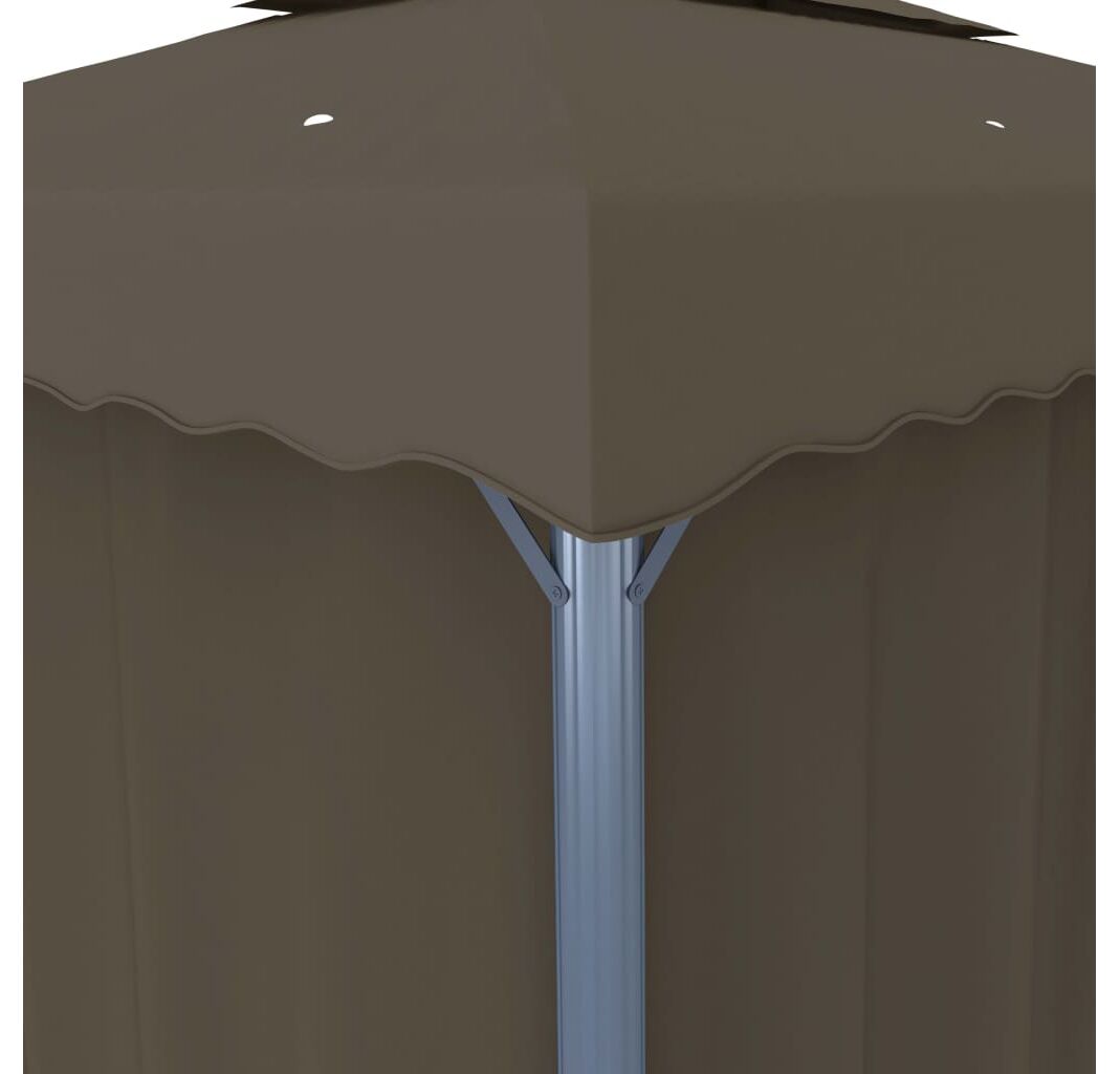 Pavilionul este proiectat pentru a crea un loc minunat pentru petreceri în aer liber, picnicuri de familie, grătare în grădină și alte tipuri de reuniuni. Este construit cu stâlpi din aluminiu și tuburi de susținere din oțel vopsit electrostatic, care asigură o rezistență și o durabilitate superioară. Copertina și pereții laterali sunt confecționați din țesătură de poliester de calitate, cu înveliș din PA, protejându-vă împotriva razelor dăunătoare ale soarelui și a ploilor blânde. Acoperișul bine proiectat cu 2 niveluri asigură o bună circulație a aerului dedesubt. În plus, sunt incluse perdele și paravane din plasă pentru o protecție completă, care vă oferă un plus de intimitate și, în același timp, țin la depărtare țânțarii supărători și alte insecte. Benzi autoadezive de fixare cu arici sunt incluse pentru o atașare ușoară. Mai mult, șirurile de lumini creează o atmosferă confortabilă în grădina dvs. când soarele apune. Luminile nu produc poluarea mediului, deoarece sunt încărcate de energie solară în timpul zilei.