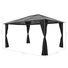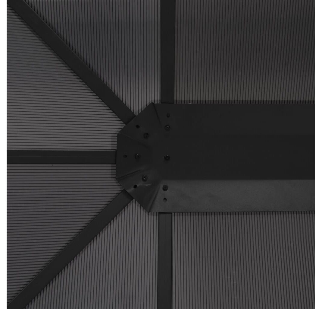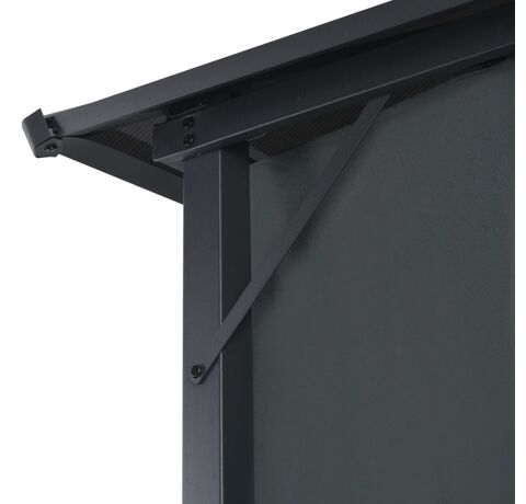 Acoperișul, realizat dintr-o placă PC cu o grosime de 6 mm, rezistentă la raze UV, vă protejează de strălucirea razelor solare directe și de radiațiile ultraviolete dăunătoare. Foișorul este construit solid din aluminiu și oțel puternic și, prin urmare, este rezistent la rugină și foarte stabil. Pavilionul este livrat cu 4 pereți laterali, care pot fi trași în condiții meteorologice nefavorabile. Dispozitivele de fixare prin bandă autoadezivă cu arici sunt, de asemenea, incluse pentru atașarea ușoară a perdelelor.