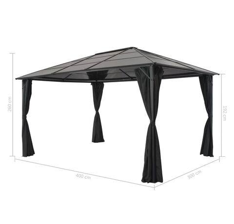 Pavilion cu perdea, negru, 4 x 3 x 2,6 m, aluminiu