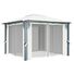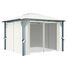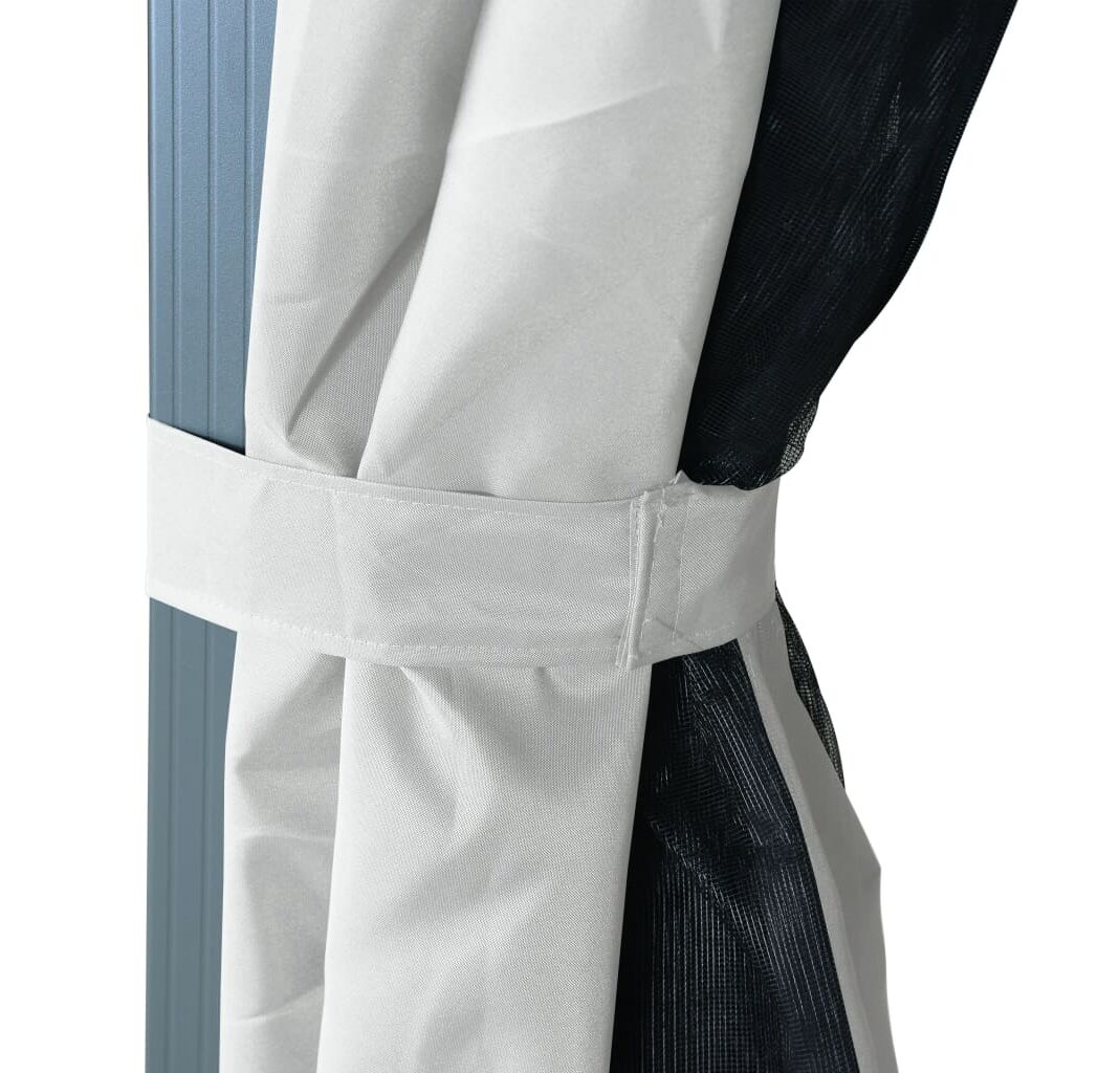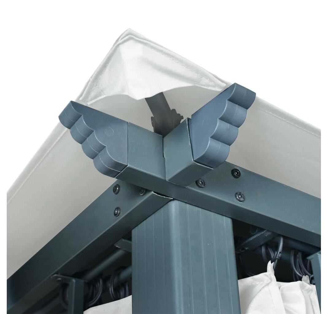 Acoperișul, realizat din material textil oxford cu înveliș din PA, vă protejează de strălucirea soarelui și razele ultraviolete dăunătoare. Foișorul este construit solid din aluminiu și oțel durabil, fiind rezistent la rugină și foarte stabil. Pavilionul este livrat cu 4 pereți laterali, care pot fi trași în condiții meteorologice nefavorabile. Pachetul de livrare include și paravane din plasă, pentru a ține la distanță insectele și pentru a asigura circulația aerului. Dispozitivele de fixare cu bandă autoadezivă cu arici sunt incluse, pentru prinderea cu ușurință a perdelelor.