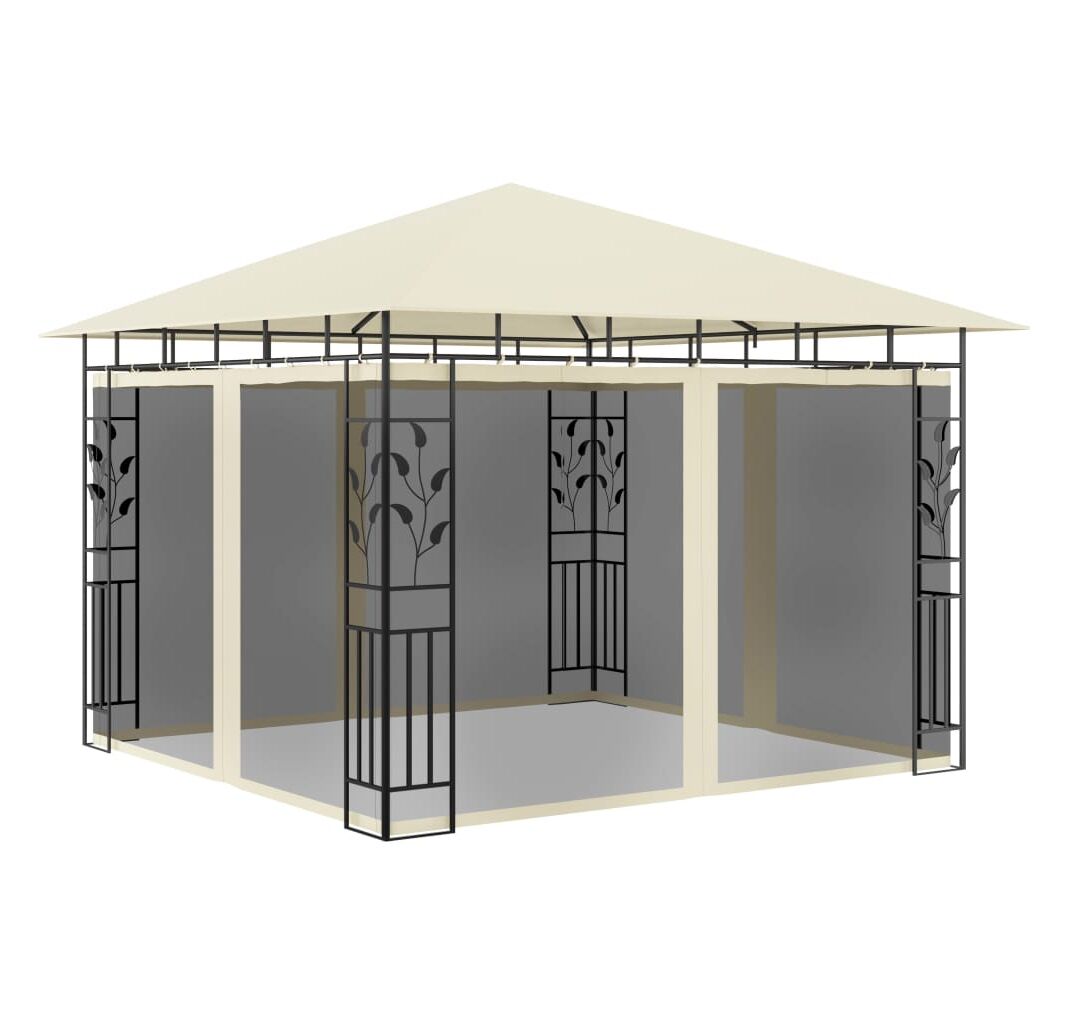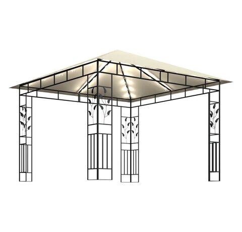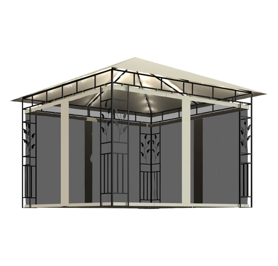 Pavilion cu plasă anti-țânțari & lumini LED crem 3x3x2,73m