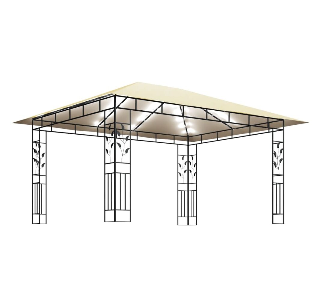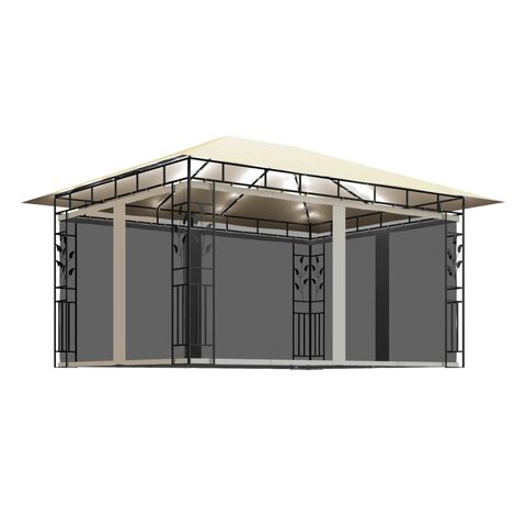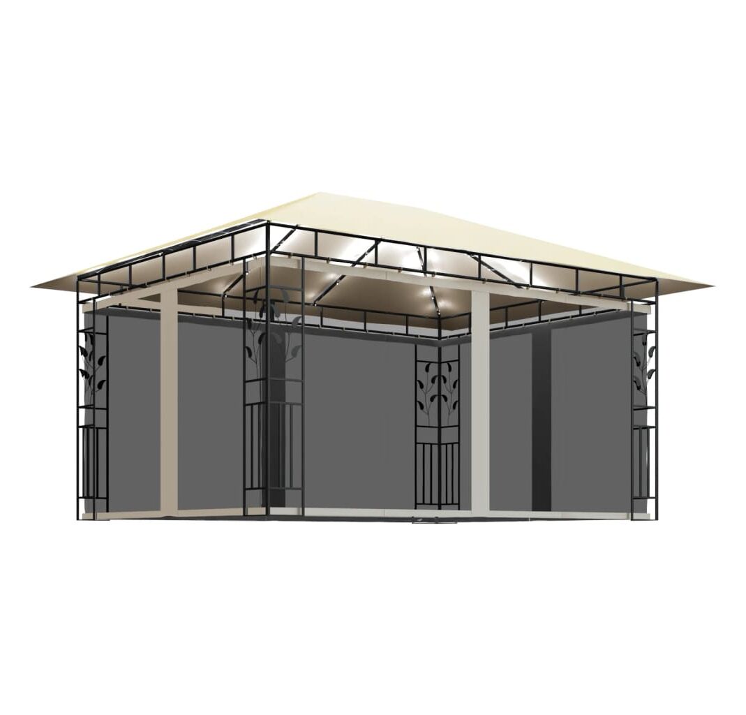 Cadrul prezintă o construcție metalică robustă, care îl face durabil și stabil. Acoperișul din material textil vă protejează de soarele arzător, ajutându-vă să vă bucurați de un confort sporit în timpul activităților în aer liber. Acest cort, echipat cu plase anti-țânțari, vă protejează de insecte și țânțari. Astfel, vă puteți bucura de timpul petrecut afară, fără să fiți deranjați. De asemenea, acest foișor poate fi montat într-un timp scurt. În plus, șirurile de lumini creează o atmosferă confortabilă în grădina dvs., când soarele apune. Luminile nu produc poluarea mediului, deoarece sunt încărcate cu energie solară în timpul zilei.