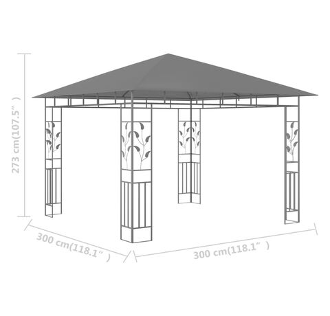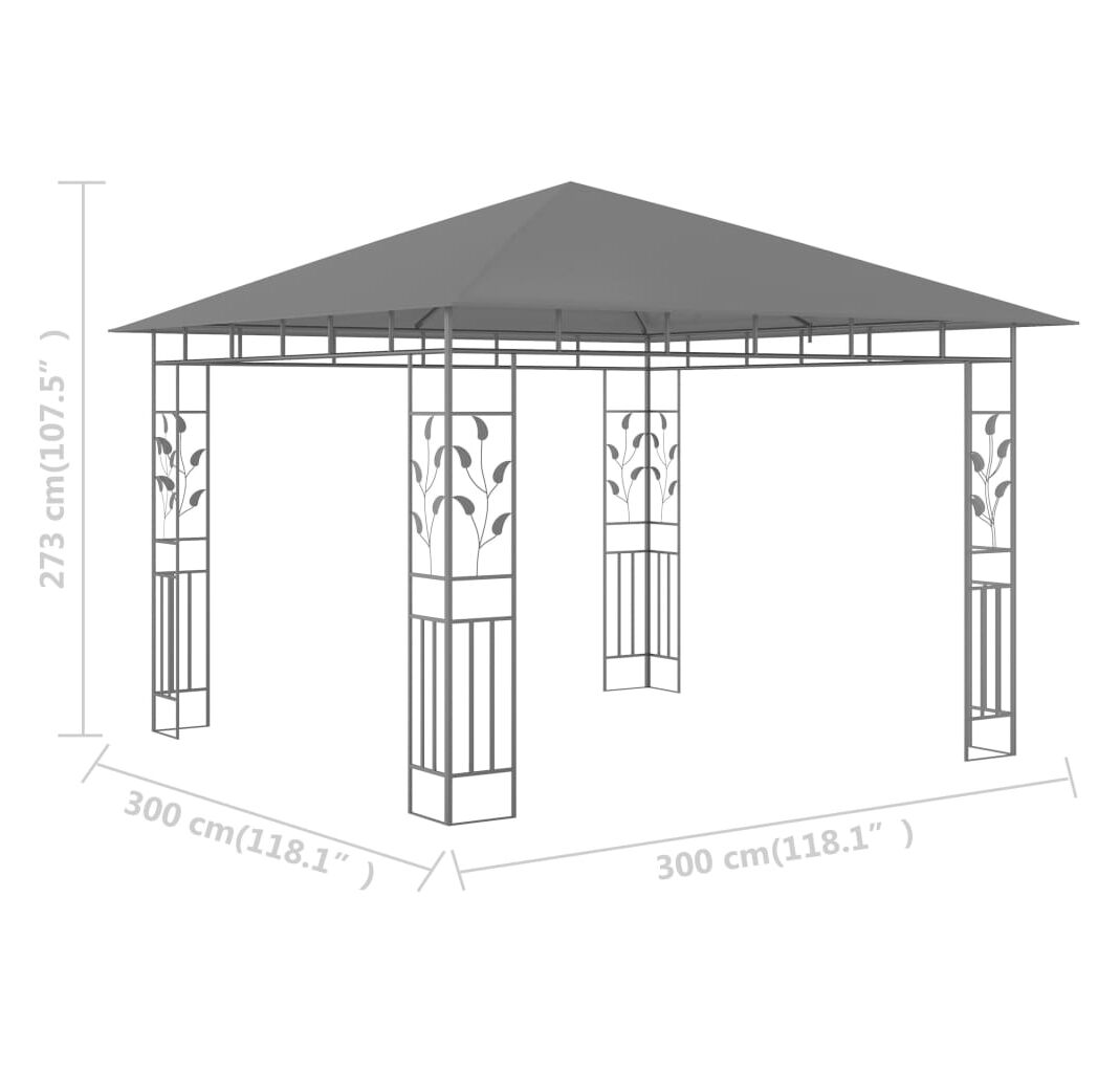 Pavilion cu plasă anti-țânțari, antracit, 3x3x2,73 m, 180 g/m²
