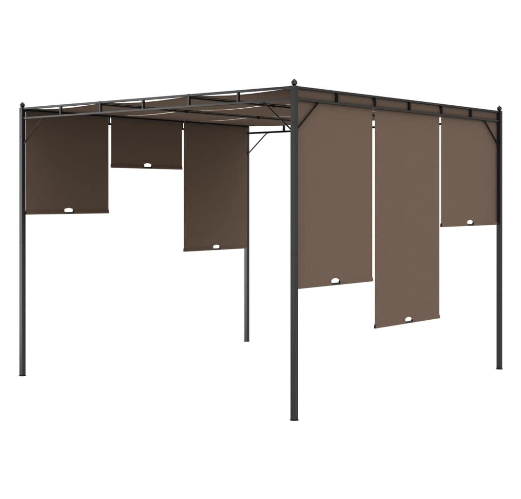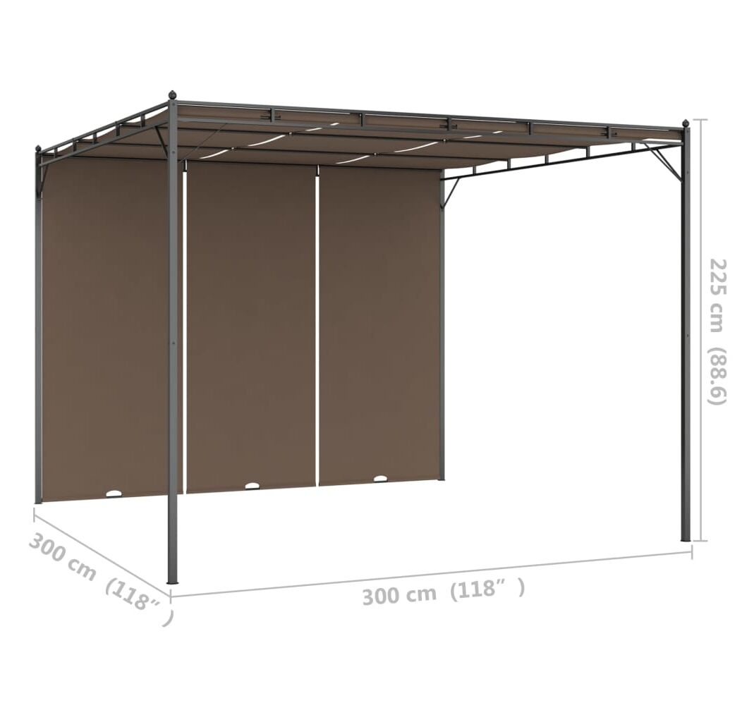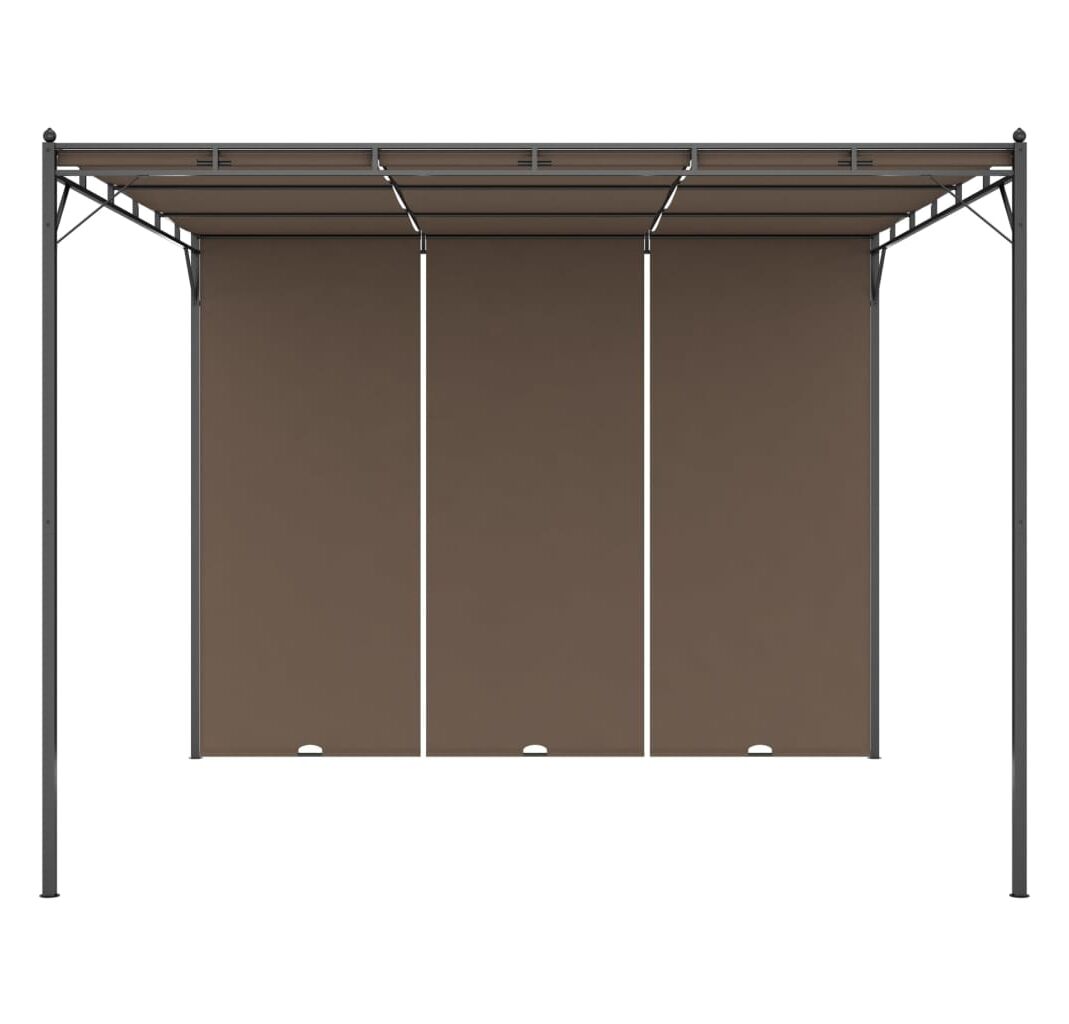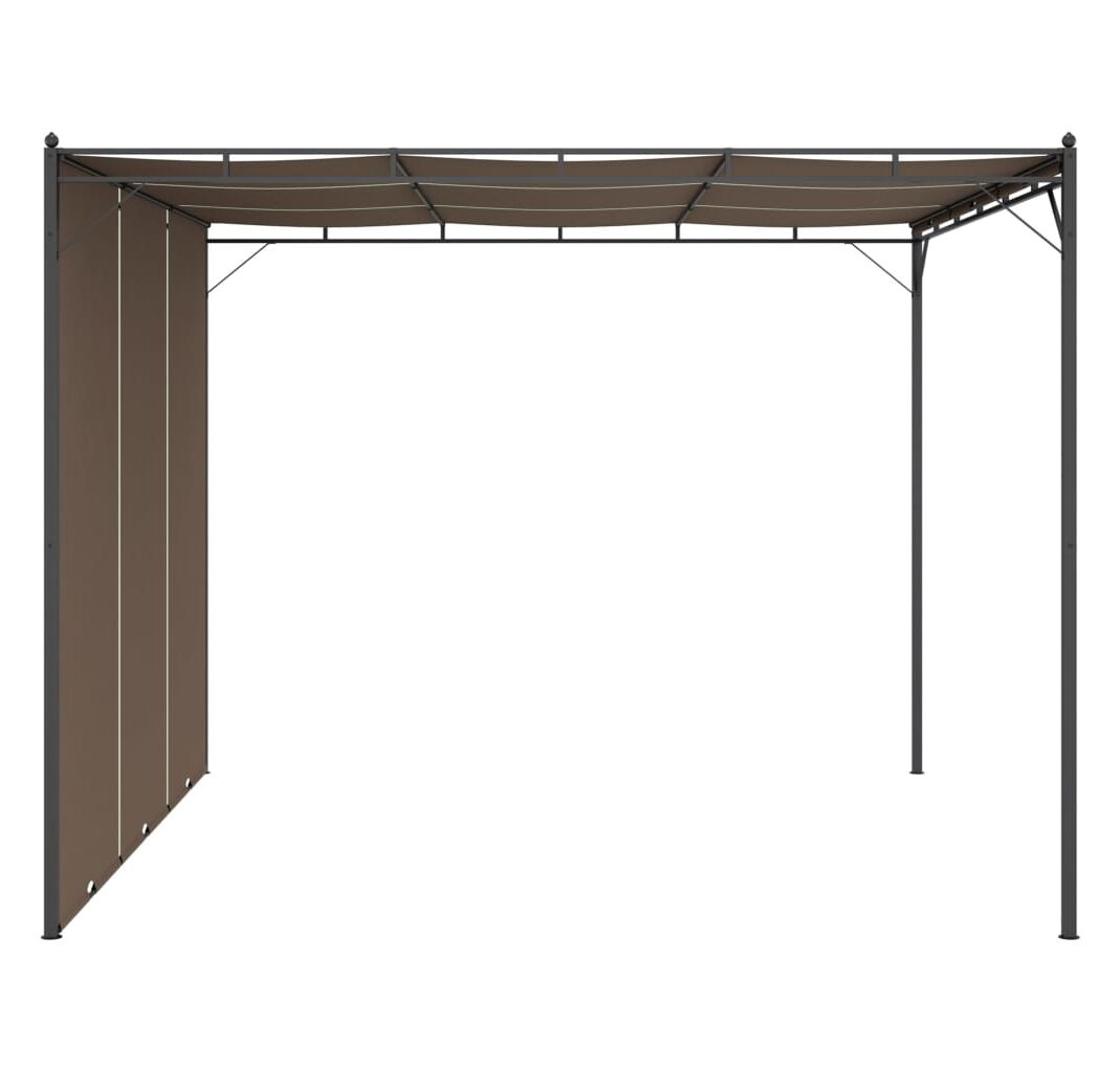 Pavilionul are o construcție din oțel vopsit electrostatic, care menține cadrul durabil și robust. Acoperișul din material textil și perdeaua laterală vă protejează de soarele arzător, permițându-vă să vă bucurați de un confort mai mare în timpul distracțiilor în aer liber. Puteți regla perdeaua la diferite înălțimi, după cum doriți. În plus, acest cort frumos, dar practic, poate fi asamblat cu ușurință.