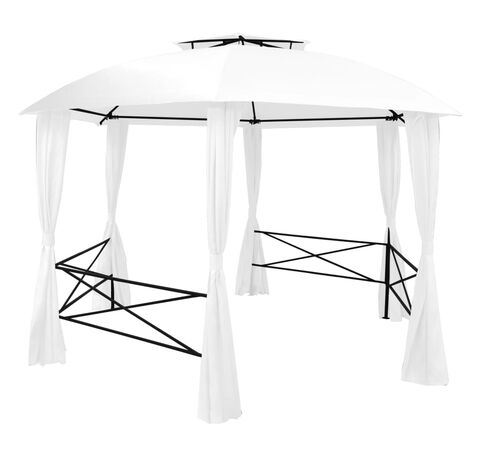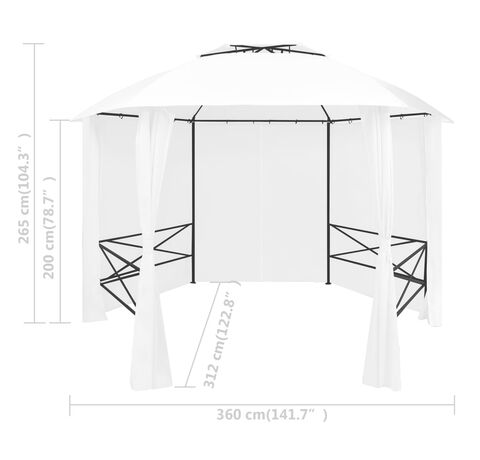 Pavilion de grădină cu perdele, alb, 360x312x265 cm, 180 g/m²