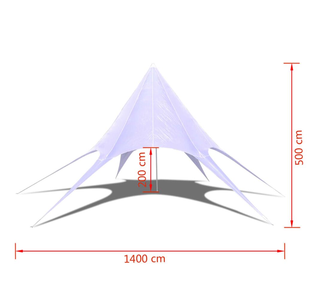 Acest pavilion/cort poate fi montat rapid pe iarbă sau pământ cu cei șase țăruși incluși. Montajul durează doar câteva minute!!! Acest foișor în formă de stea poate acoperi o zonă cu un diametru de 14 m. Realizat din țesătură oxford rezistentă la raze UV, pavilionul va putea fi utilizat o perioadă îndelungată.