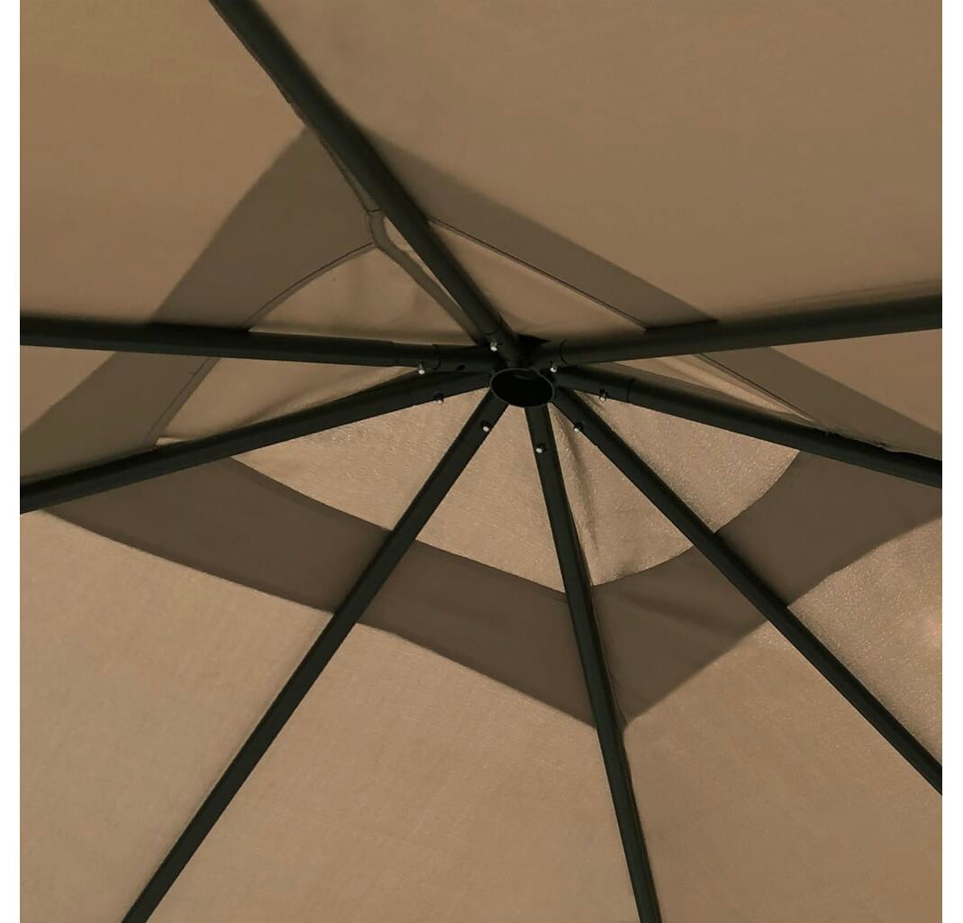 Acest pavilion are o construcție solidă din oțel, ceea ce îl face rezistent și robust, pentru utilizare în exterior. Acoperișul oferă protecție împotriva ploii și a soarelui arzător, astfel încât să vă puteți bucura de spațiul de exterior, fără griji.