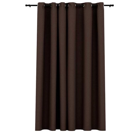 Perdea opacă, aspect pânză, cu ocheți, gri taupe, 290x245 cm