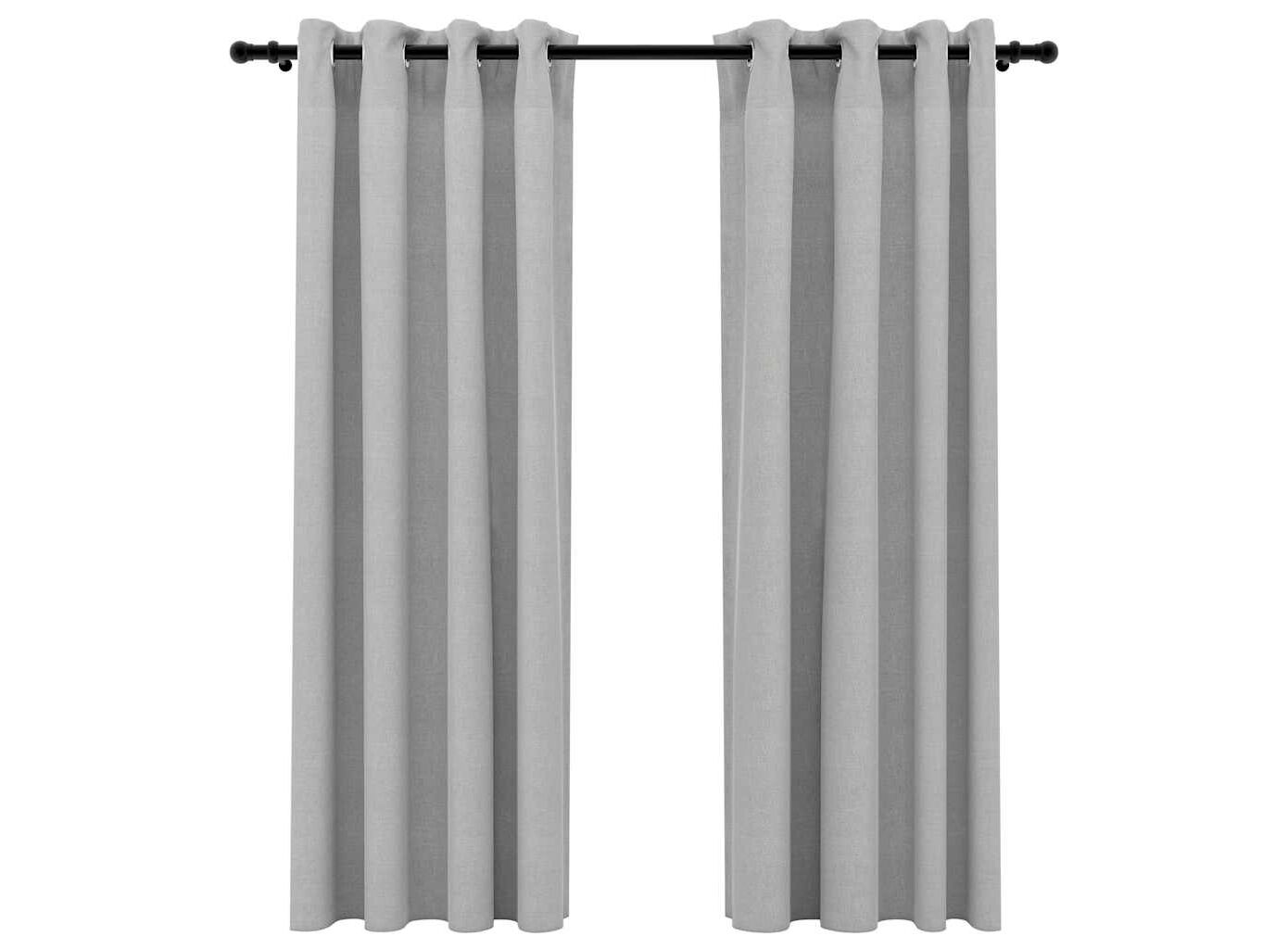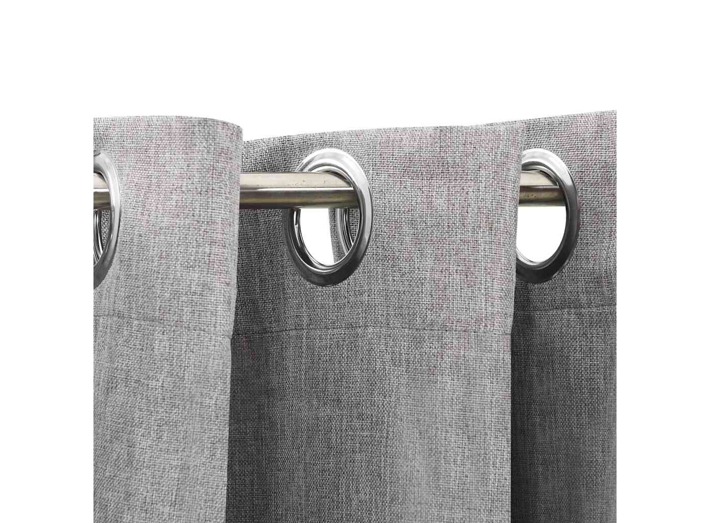 Draperii opace, aspect in, cu ocheți, 2 buc., gri, 140x175 cm