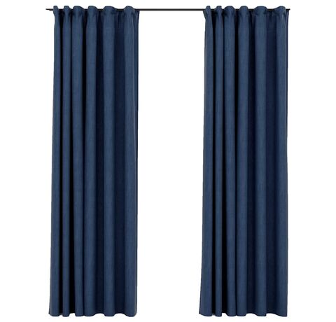 Perdele opace aspect pânză cârlige, 2 buc, albastru, 140x225 cm