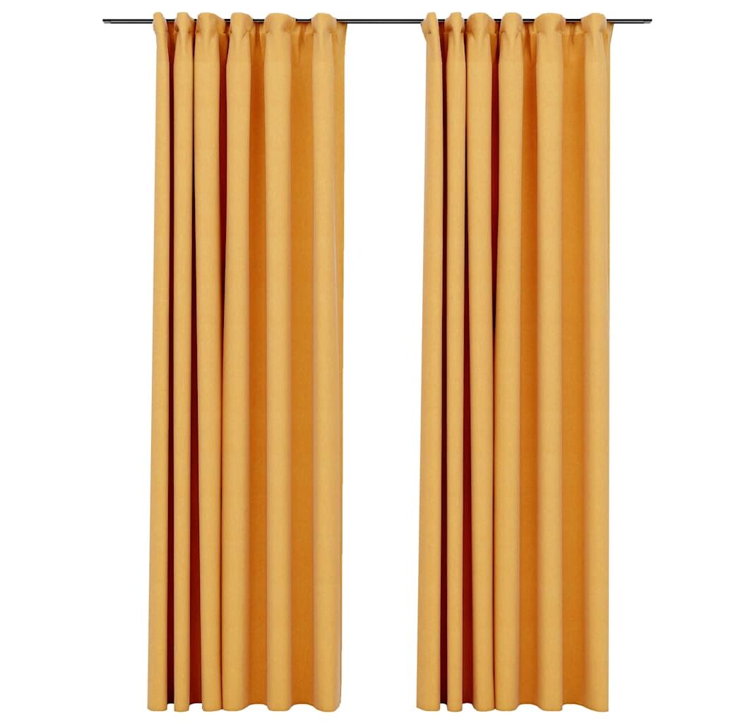 Perdelele pot fi agățate cu ușurință pe șinele de perdea, datorită cârligelor metalice. Draperiile, realizate din țesătură premium 100% poliester, cu aspect de pânză, se pot spăla la mașină. Vă rugăm să rețineți: tija de perdea nu este inclusă.