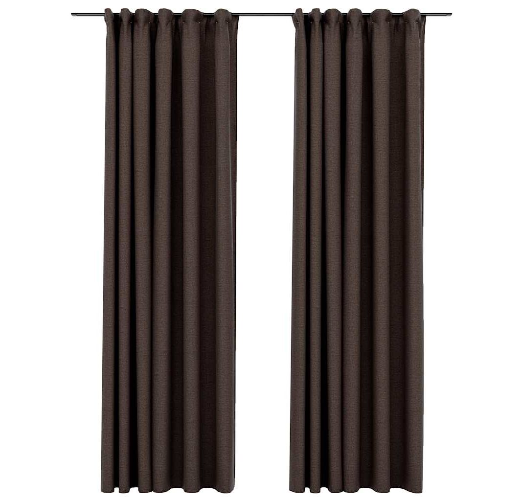 Perdelele pot fi agățate cu ușurință pe șinele de perdea, datorită cârligelor metalice. Draperiile, realizate din țesătură premium 100% poliester, cu aspect de pânză, se pot spăla la mașină. Vă rugăm să rețineți: tija de perdea nu este inclusă.