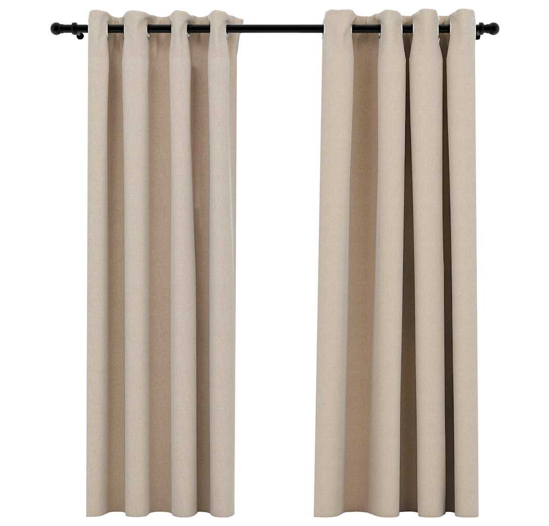 Datorită ocheților, perdeaua poate fi agățată cu ușurință pe orice tijă de perdea. Draperia, realizată din țesătură premium 100% poliester, cu aspect de pânză, se poate spăla la mașină. Vă rugăm să rețineți: tija de perdea nu este inclusă.