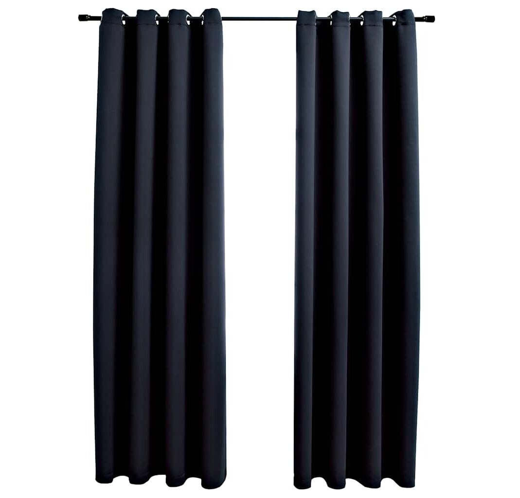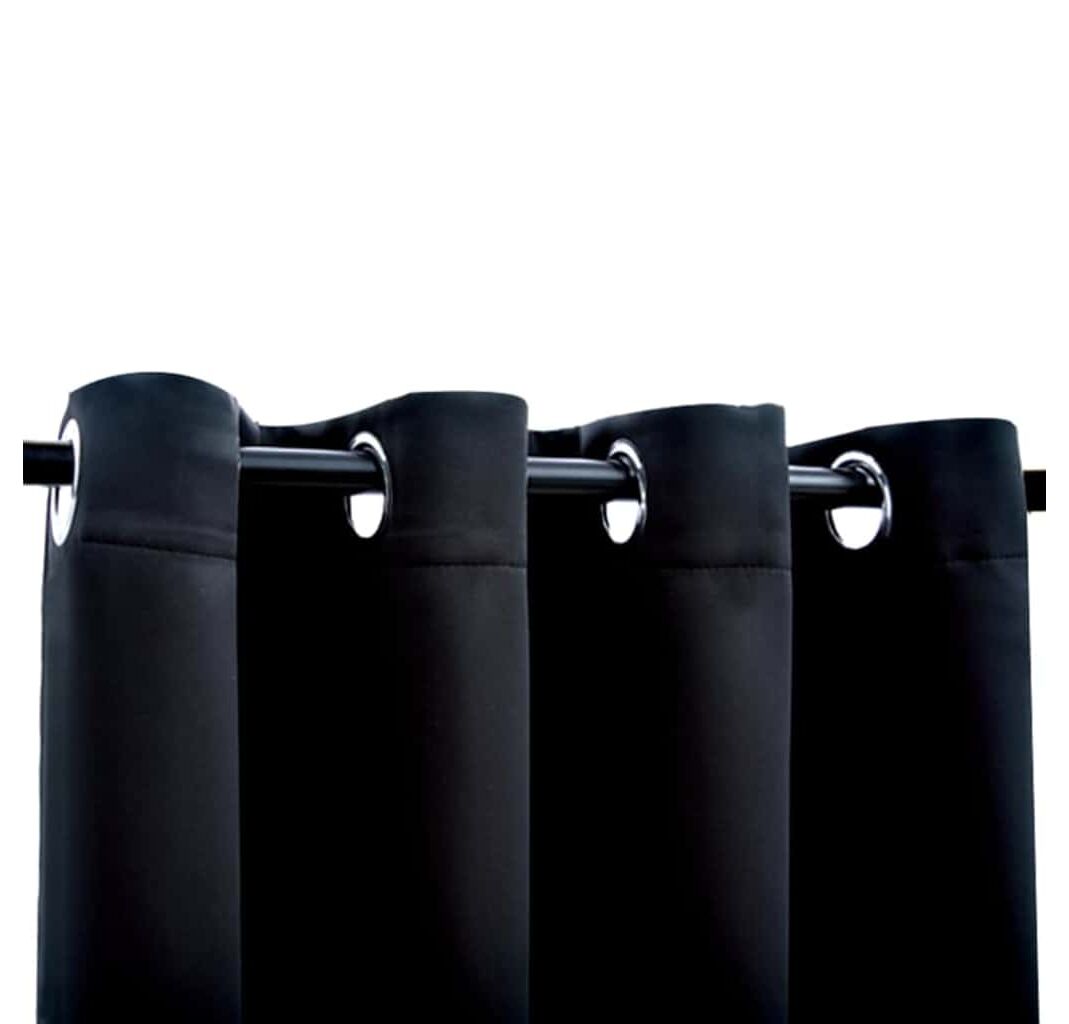 Cantitatea minima pentru "Perdele opace cu inele, 2 buc., negru, 137x213 cm, material textil" este 1.