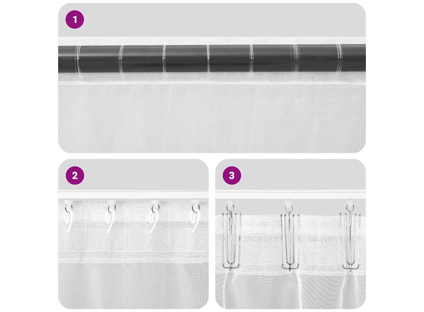 • Utilizare versatilă: Perdeaua transparentă este perfectă pentru stratificarea cu draperii mai grele sau pentru utilizarea solo pentru un aspect proaspăt, minimalist.