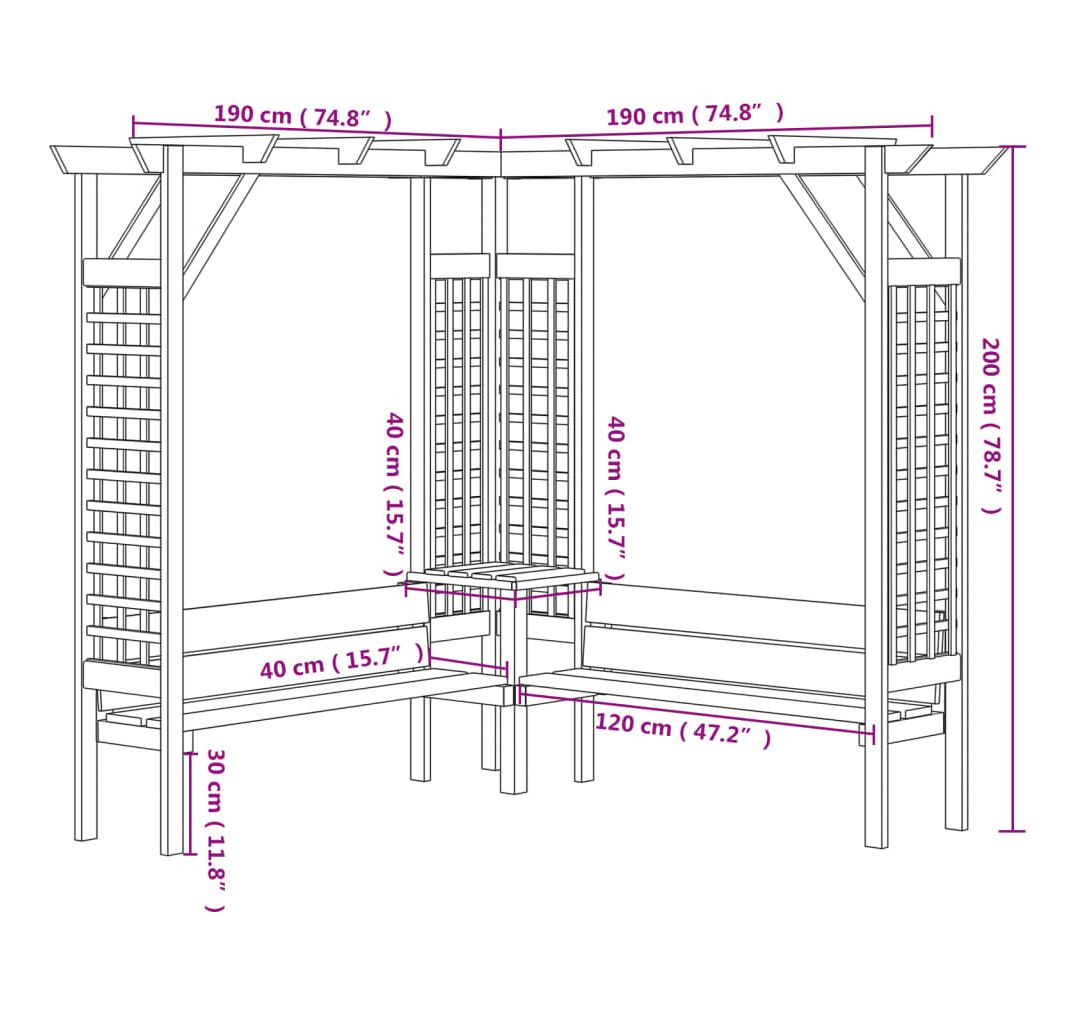 Fabricată din lemn de pin verde tratat de înaltă calitate, pergola de grădină este foarte robustă, durabilă și rezistentă la intemperii. Pavilionul de grădină formează un loc stabil pentru trandafiri și alte plante cățărătoare, care vor deveni cu siguranță punctul de atracție al grădinii dvs. Banca integrată oferă un loc de odihnă pentru a vă bucura de frumusețea grădinii. Pergola de grădină este ușor de asamblat.
