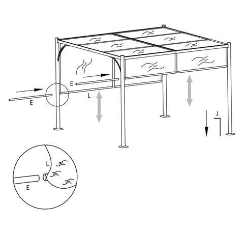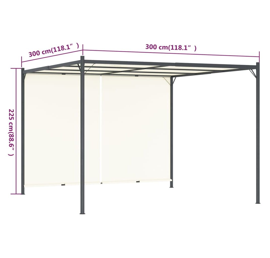 Această pergolă inovatoare este prevăzută cu o copertină glisantă retractabilă și reglabilă, care poate fi coborâtă și înălțată pe orice latură cu mânerele încorporate. Prin urmare, dvs. veți decide cât de multă lumină sau umbră doriți. Fiind fabricată din oțel de calitate superioară vopsit electrostatic, această pergolă este foarte robustă și durabilă. Acoperișul este fabricat din țesătură de poliester cu înveliș din PA, fiind rezistent la apă și la intemperii. De asemenea, copertina poate fi îndepărtată pentru spălare sau depozitare, atunci când nu este folosită.