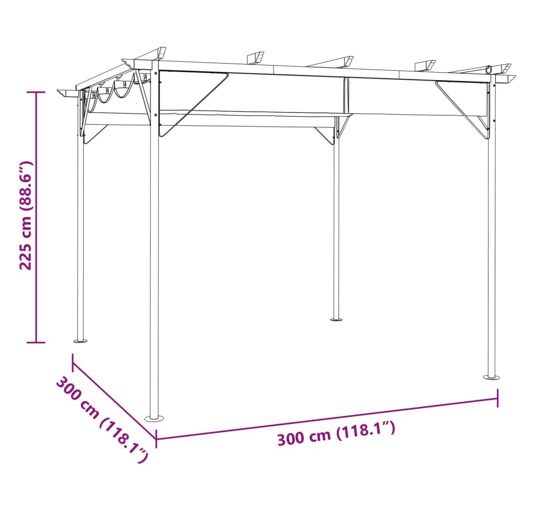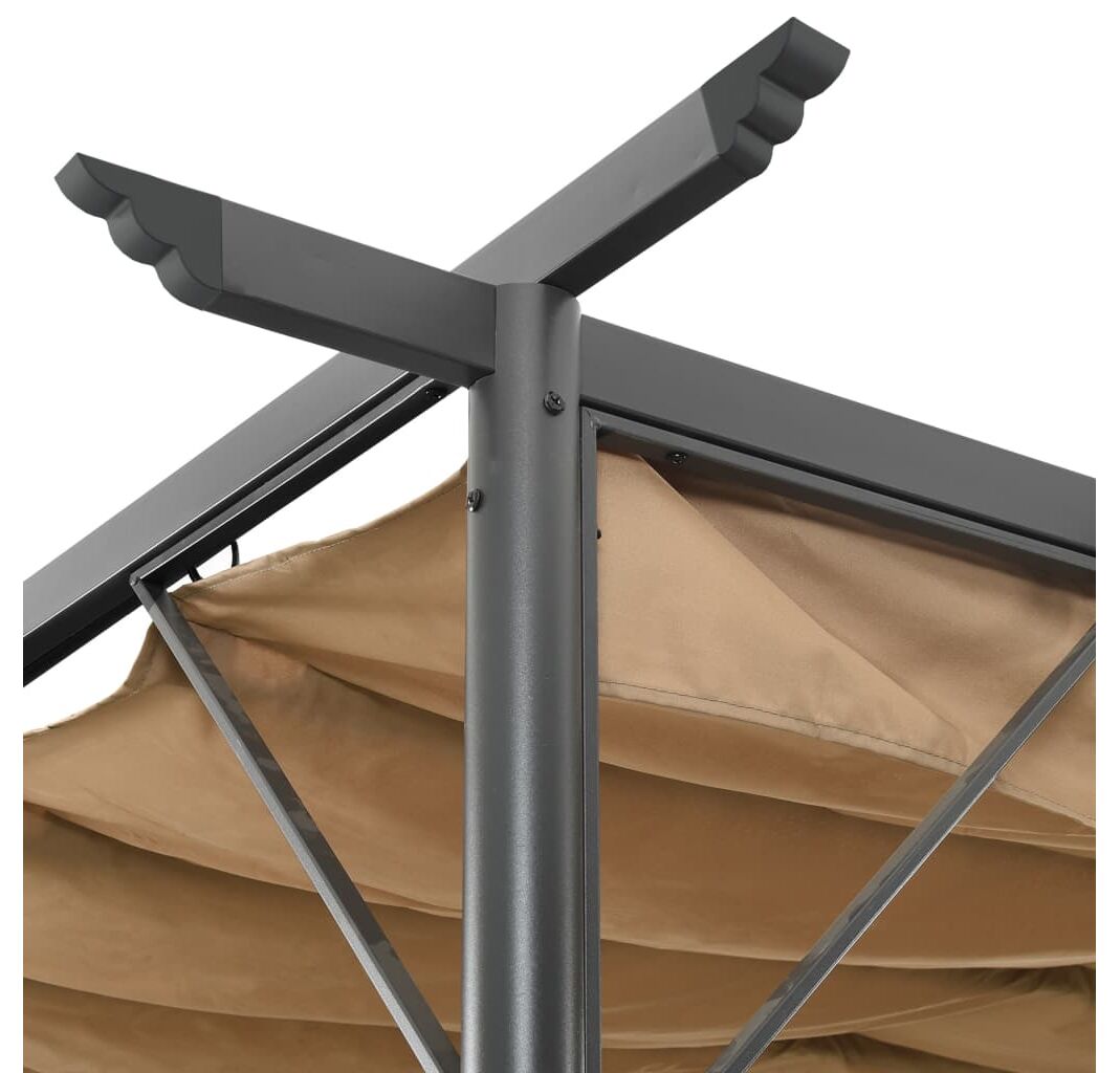 Această pergolă versatilă va fi un mare plus decorativ pentru grădină sau orice alt spațiu în aer liber. Datorită sistemului său cu acoperiș retractabil, această pergolă este perfectă pentru a furniza umbră și protecție de razele solare și ploaie.