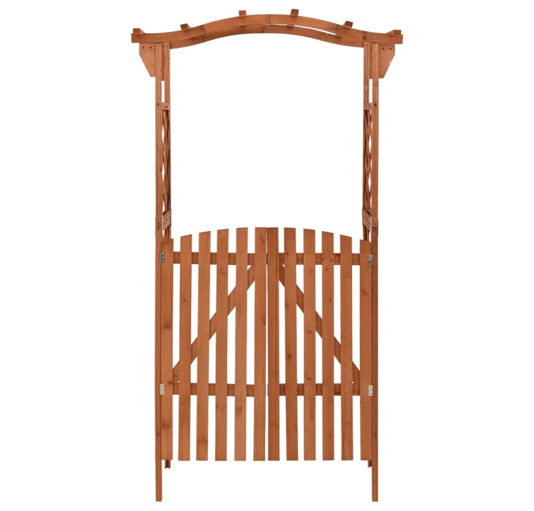 Această pergolă versatilă din lemn cu poartă este menită să fie o completare decorativă pentru grădina dumneavoastră sau orice alt spațiu exterior.