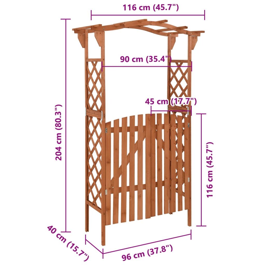 Fabricată din lemn masiv de brad și lemn masiv de pin, această arcadă de grădină este rezistentă la intemperii și durabilă. Această arcadă frumoasă formează o minunată zonă de intrare, trecere sau pentru decorarea aleii din grădină. Când va fi acoperită de viță de vie, nu vă veți putea lua ochii de la această frumoasă pergolă.