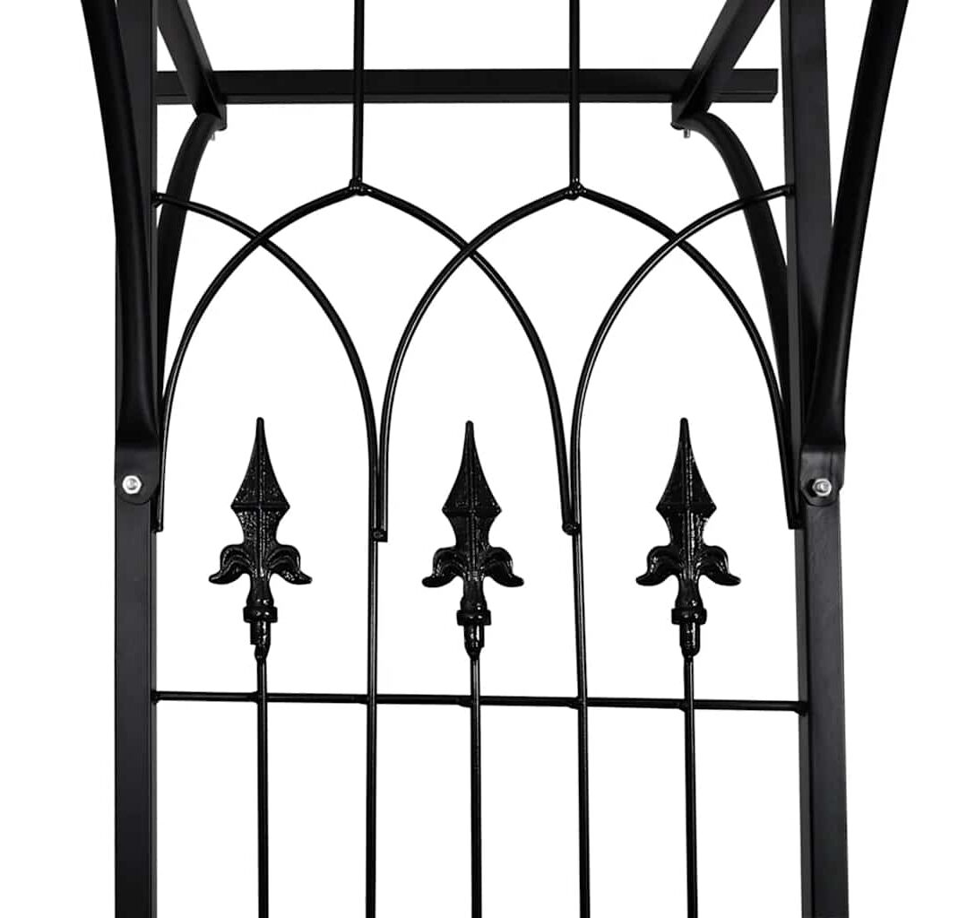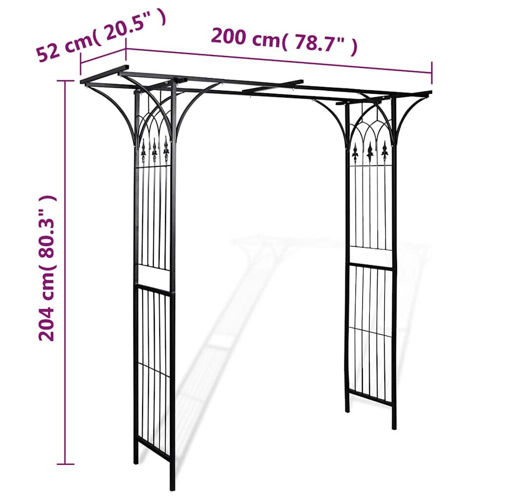 Fabricată din fier, această pergolă de grădină, este destul de solidă încât să asigure suport plantelor cățărătoare. Având o lățime de 200 cm, pergola de grădină are o înălțime de 204 cm, iar dvs. veți putea decide la ce adâncime să o îngropați în pământ.