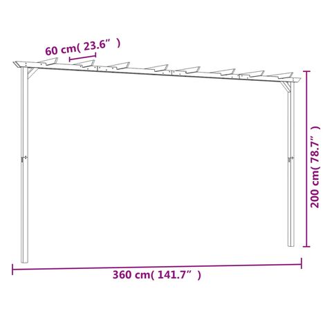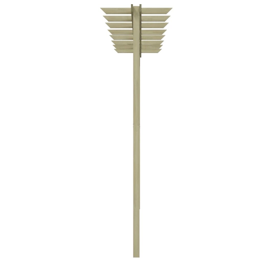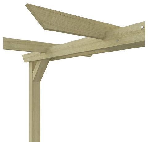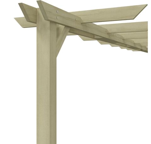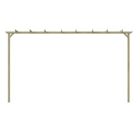 Fabricată din lemn de pin verde tratat, de înaltă calitate, această pergolă este robustă, durabilă și rezistentă la putrezire. Pergola este ușor de asamblat. Pachetul de livrare include 2 stâlpi, 4 grinzi, 2 suporturi, 1 conector mijlociu, 8 căpriori și șuruburi.