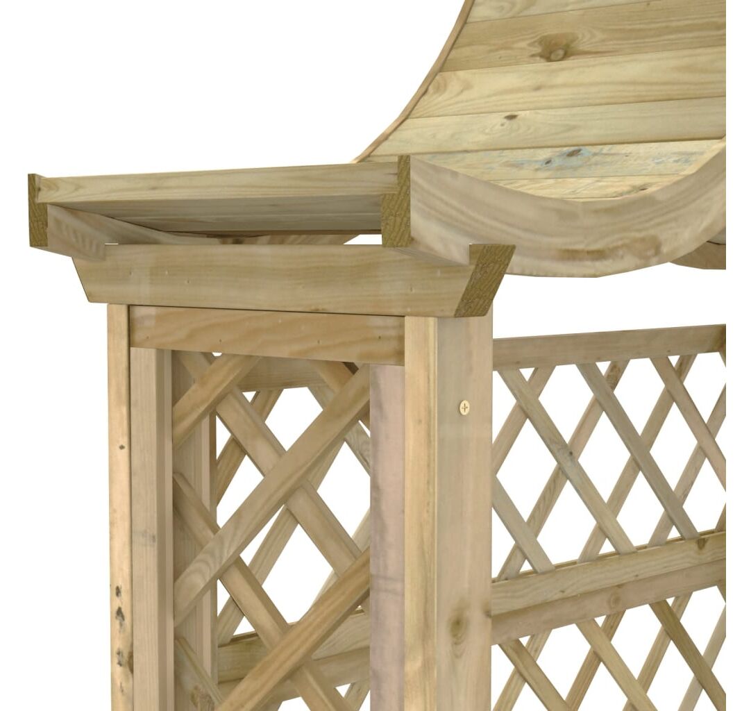 Fabricată din lemn de pin verde tratat de înaltă calitate, pergola de grădină este foarte robustă, durabilă și rezistentă la intemperii. Pavilionul de grădină formează un loc stabil pentru trandafiri și alte plante cățărătoare, care vor deveni cu siguranță punctul de atracție al grădinii dvs. Banca integrată oferă un loc de odihnă pentru a vă bucura de frumusețea grădinii. Pergola de grădină este ușor de asamblat.
