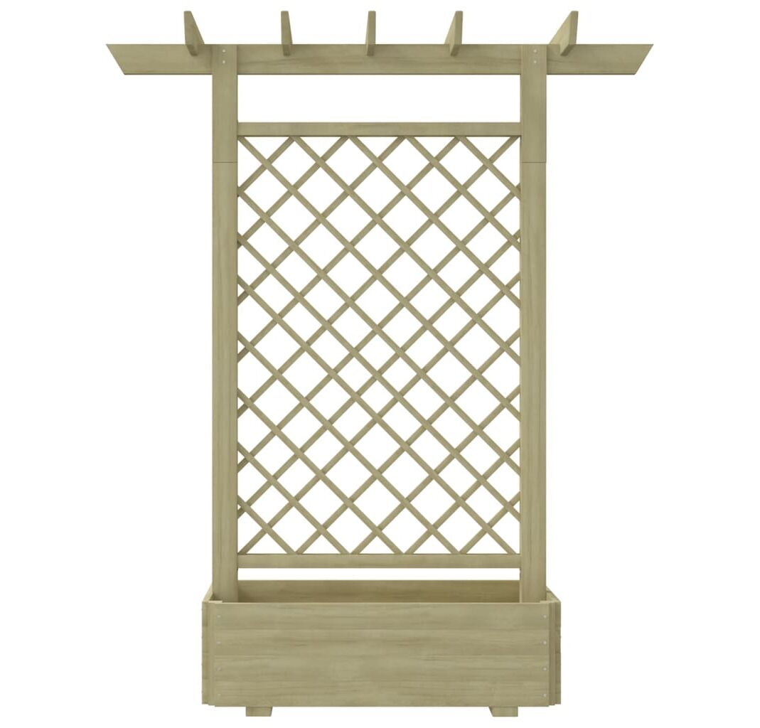 Fabricată din lemn de pin verde tratat, această jardinieră este foarte robustă, durabilă și rezistentă la putrezire. Grilajul încorporat formează un suport minunat pentru trandafiri și alte plante agățătoare.