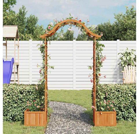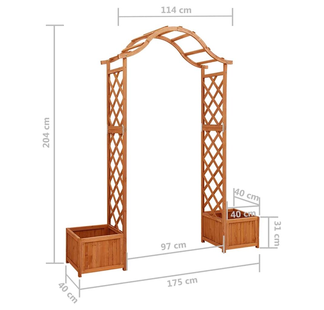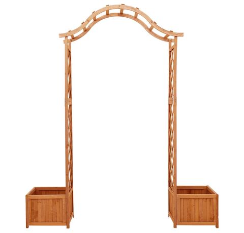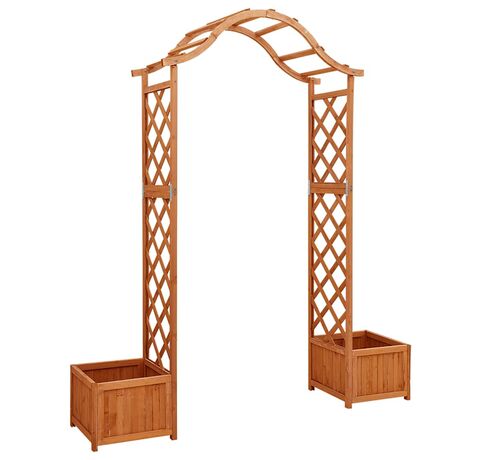 Fabricată din lemn masiv de brad, această arcadă de grădină este rezistentă la intemperii și durabilă. Această arcadă frumoasă formează o minunată zonă de intrare, trecere sau pentru decorarea cărării din grădină. Cele două jardiniere laterale oferă un loc suplimentar pentru a crește flori frumoase. Când vița de vie se cațără, nu vă veți putea lua ochii de la această frumoasă pergolă.