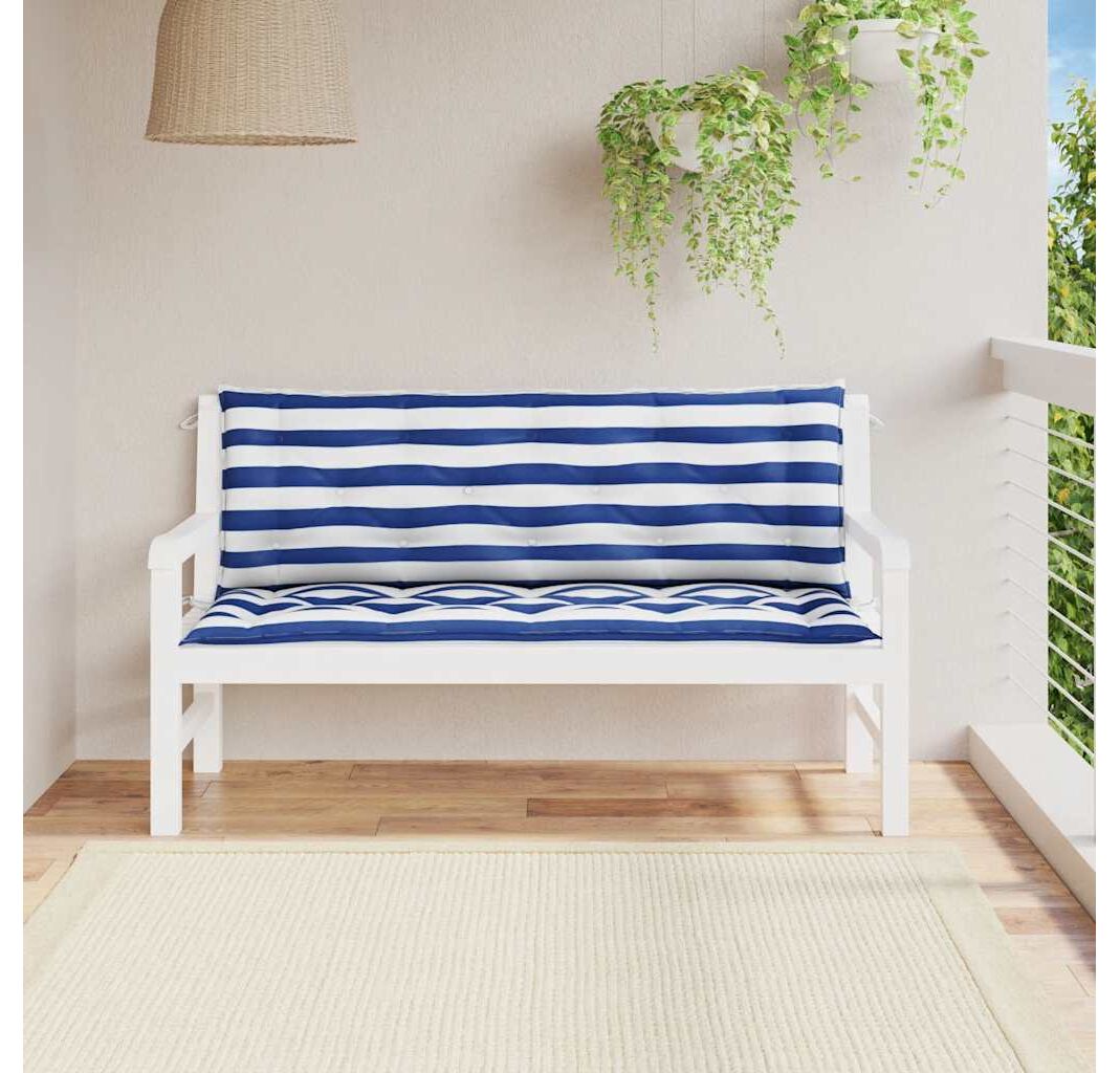 Perne bancă, 2 buc., 150x50x7 cm dungi albastre și albe, oxford