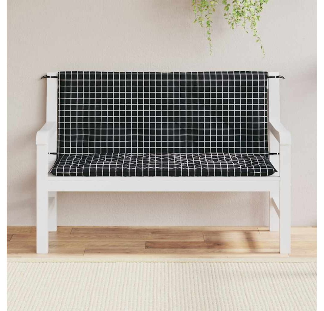 Perne bancă de grădină 2 buc. negru carouri 120x50x7 cm textil
