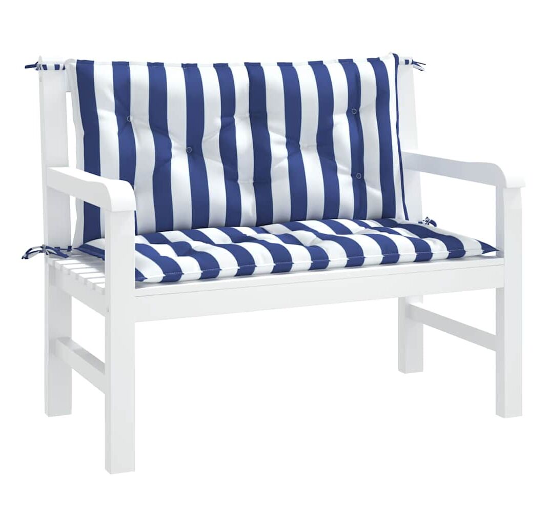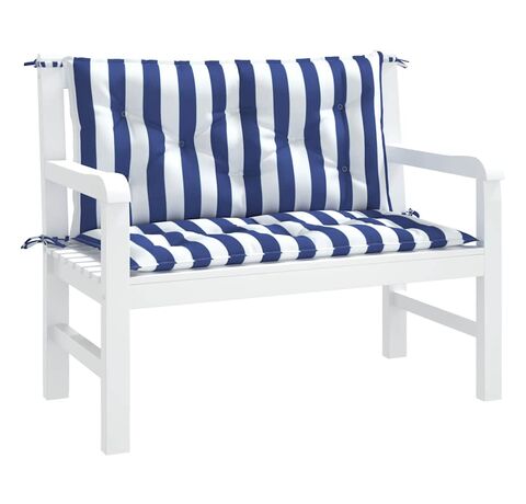 Perne bancă grădină, 2 buc., albastru&alb, 100x50x7 cm, textil