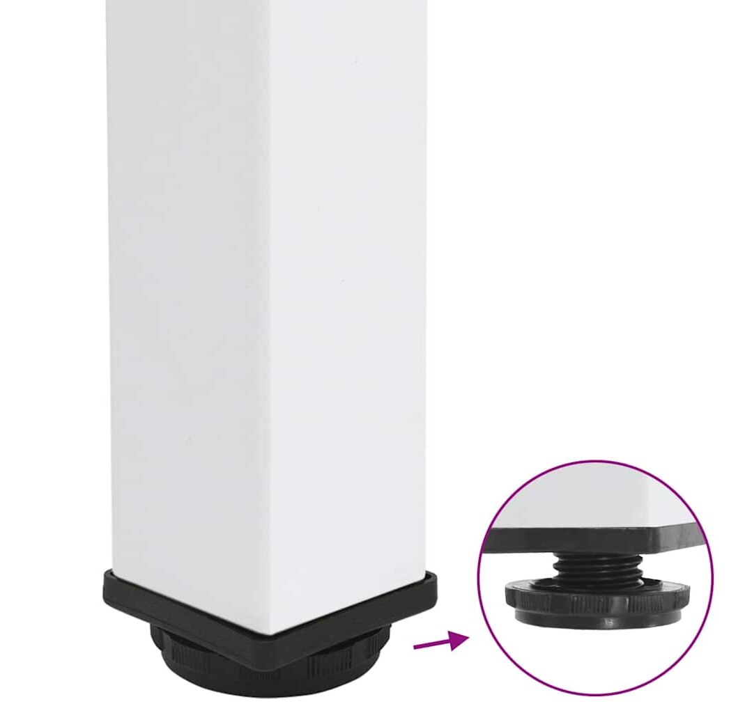 • Design practic: Acest picior de masă de bar include nivelatoare reglabile, asigurând stabilitatea chiar și pe podele neuniforme și reducând la minimum zgârieturile de pe podea. În plus, suportul are găuri pre-găurite și șuruburi incluse în livrare, care pot fi utilizate pentru fixarea piciorului pe blat (nu sunt incluse), facilitând asamblarea.