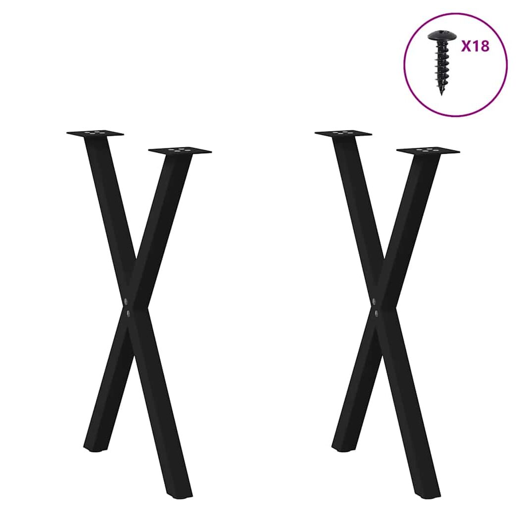 Picioare de masă în formă de X, 2 buc., negru, 50x(72-73) cm, oțel