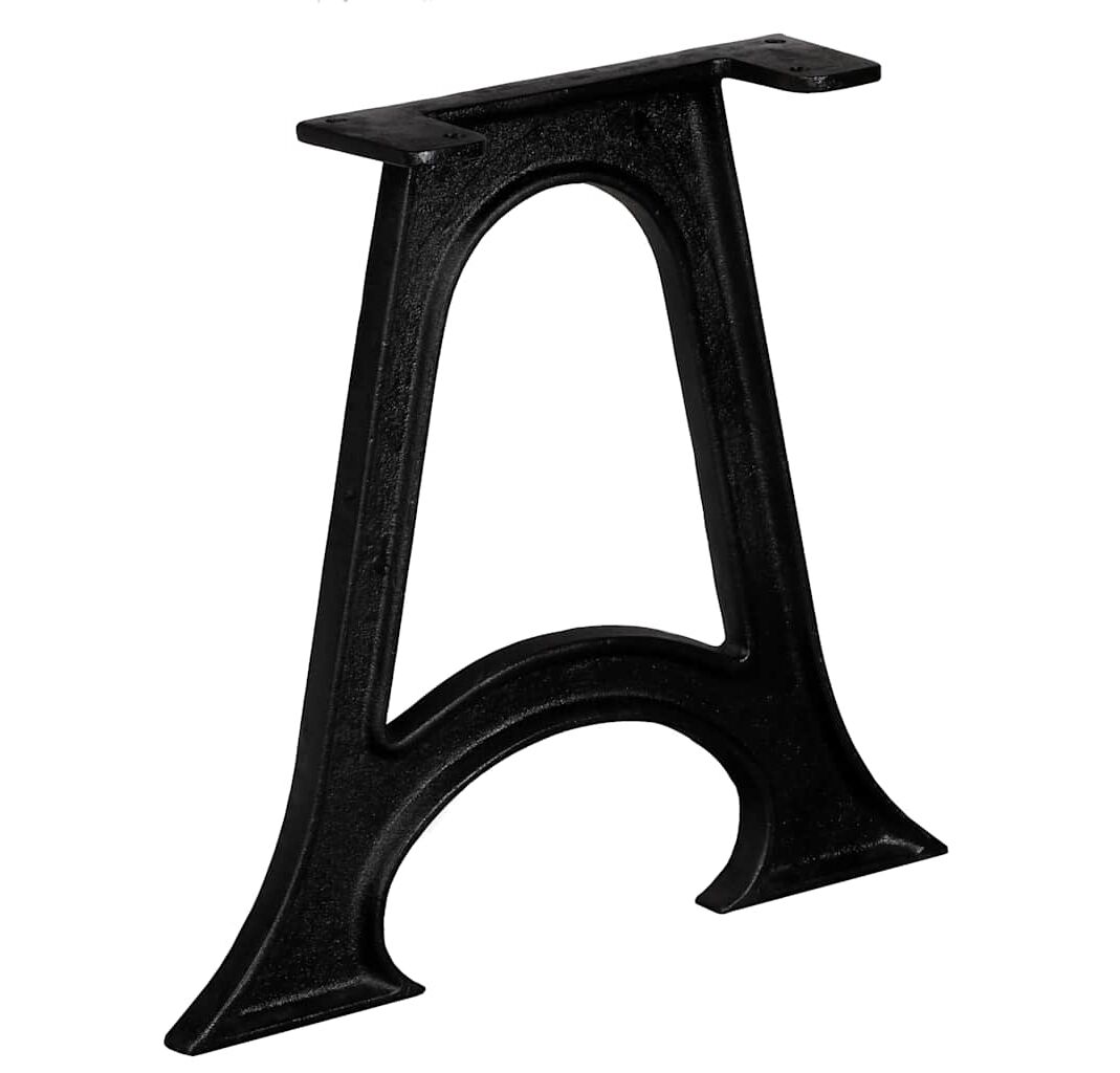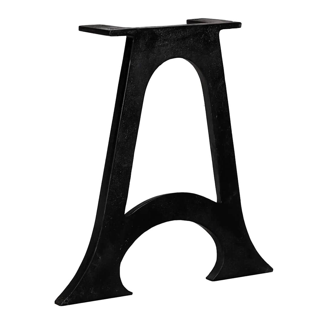 Aceste picioare de masă sunt realizate din fontă rezistentă, care a fost lustruită, vopsită și lăcuită, pentru durabilitate. Aceste picioare de masă robuste pot susține un blat de mare greutate, datorită designului lor arcuit, cu un cadru în formă de A. Având găuri pregătite pe placa de montaj, picioarele de masă sunt ușor și rapid de instalat pe blatul mesei.