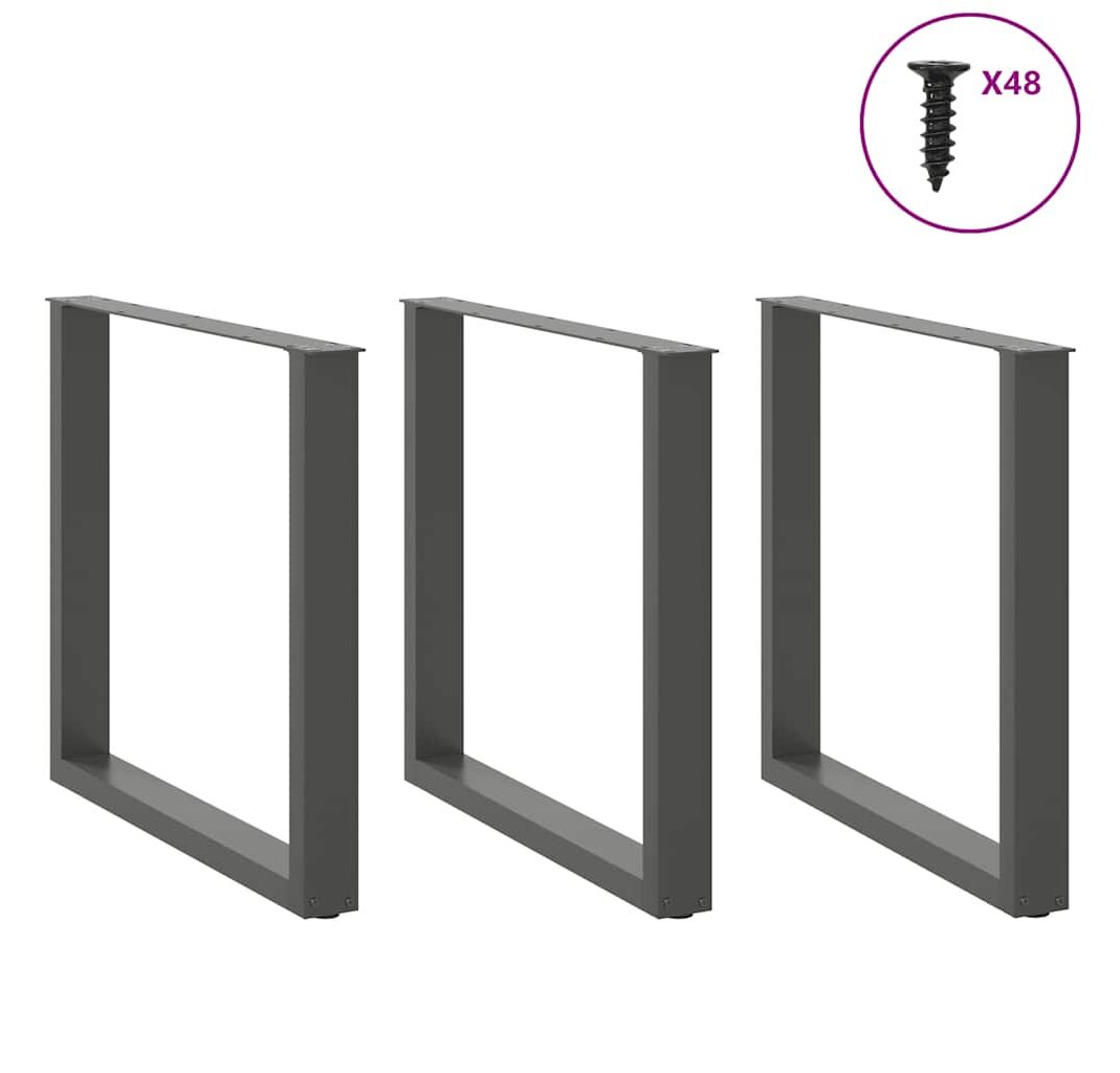 Picioare de masă în formă de U, 3 buc., antracit, 90x(72-73) cm, oțel