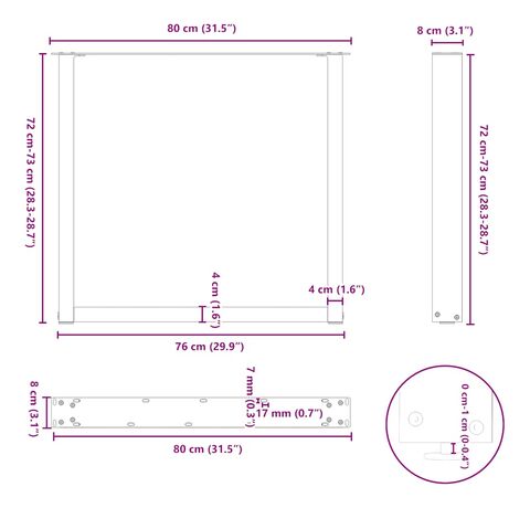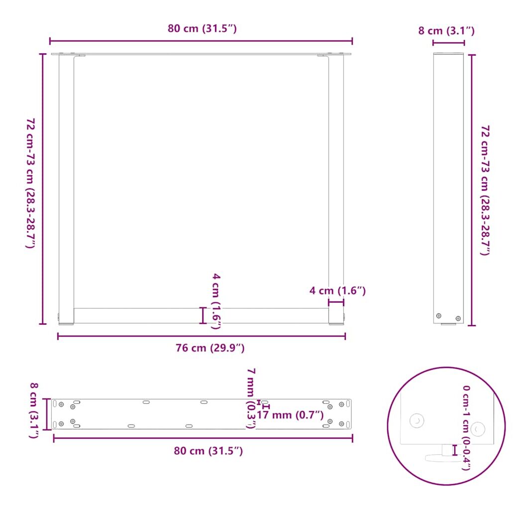 - Design practic: Acest picior pentru măsuța de cafea include nivelatoare reglabile, asigurând stabilitatea chiar și pe podele neuniforme și reducând la minimum zgârieturile de pe podea. În plus, suportul are găuri pre-găurite și șuruburi incluse în livrare, care pot fi utilizate pentru fixarea piciorului pe blat (nu sunt incluse), facilitând asamblarea.