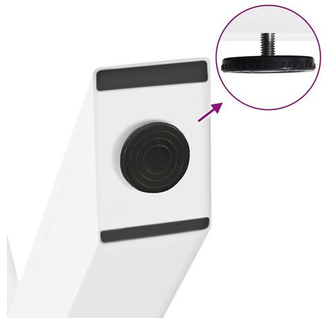 - Design practic: Acest picior de birou include nivelatoare reglabile, asigurând stabilitatea chiar și pe podele neuniforme și reducând la minimum zgârieturile de pe podea. În plus, suportul are găuri pre-găurite și șuruburi incluse în livrare, care pot fi utilizate pentru fixarea piciorului pe blat (nu sunt incluse), facilitând asamblarea.
