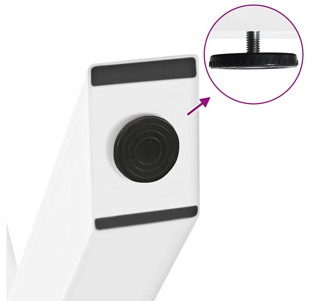 • Design practic: Acest picior de birou include nivelatoare reglabile, asigurând stabilitatea chiar și pe podele neuniforme și reducând la minimum zgârieturile de pe podea. În plus, suportul are găuri pre-găurite și șuruburi incluse în livrare, care pot fi utilizate pentru fixarea piciorului pe blat (nu sunt incluse), facilitând asamblarea.