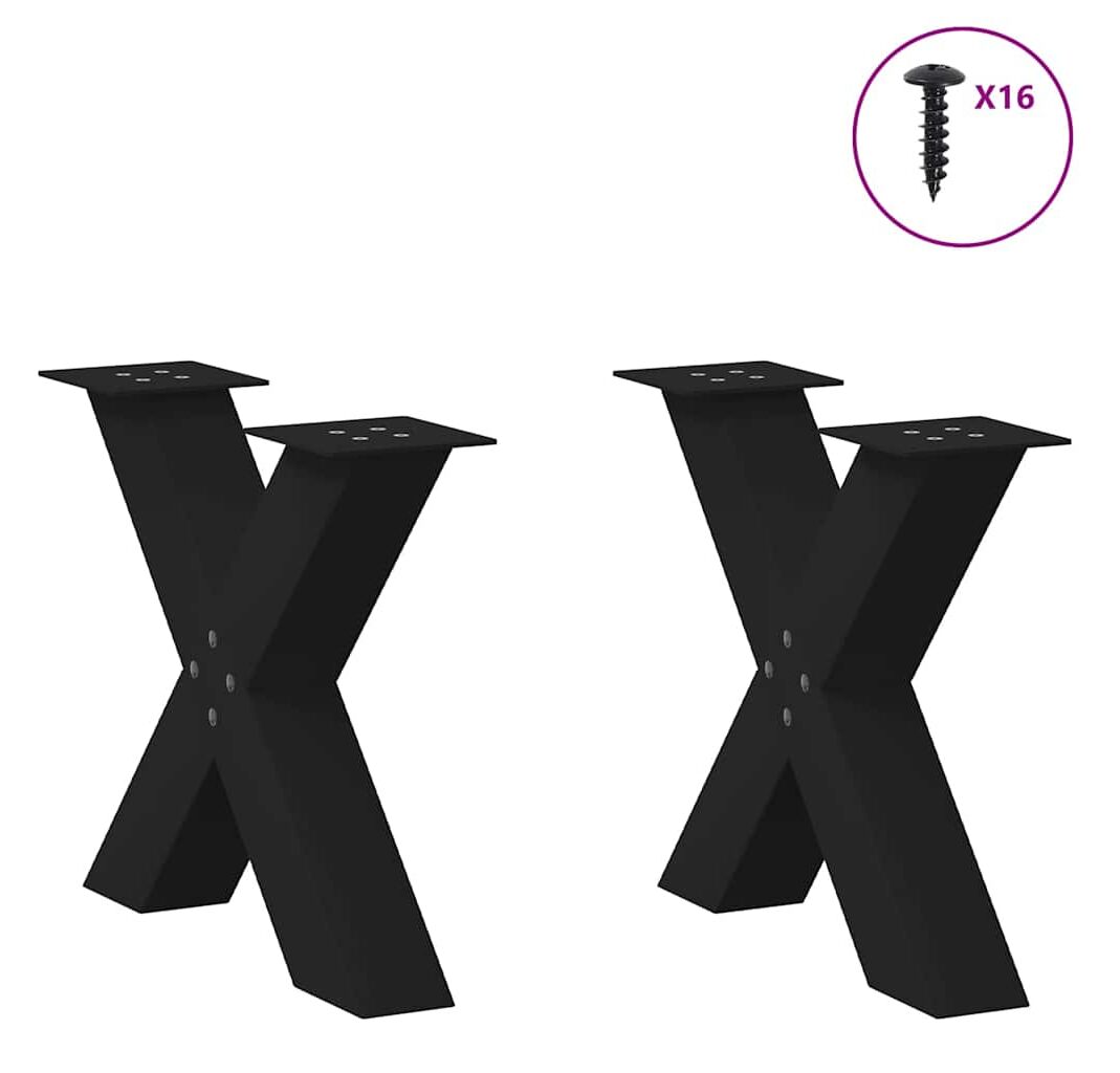 Picioare pentru măsuță de cafea în formă de X, 2 buc., negru, 60x(42-43) cm, oțel