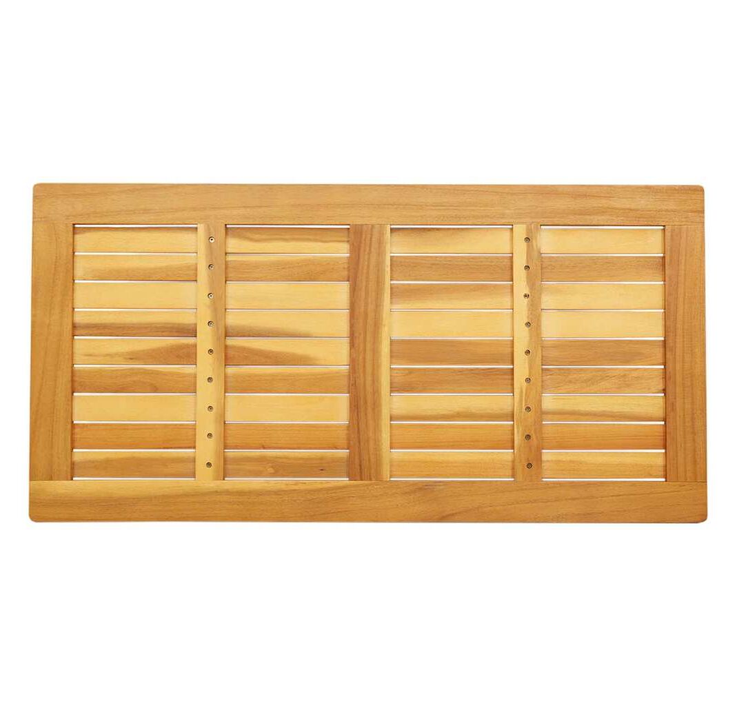 Asta e o placă de masă dreptunghiulară, cu dimensiunile de 100 x 50 x 2 cm, care combină utilitatea cu aspectul fain al lemnului masiv de tec. Designul cu lamele îi dă un aer modern, perfect pentru toate mesele și întâlnirile relaxate, aducând o atmosferă caldă în orice loc.