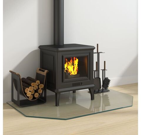 Această placă de sticlă pentru șemineu poate fi folosită ca acoperire pentru podea, pentru a proteja suprafața unei podele existente împotriva căldurii de la sobă.