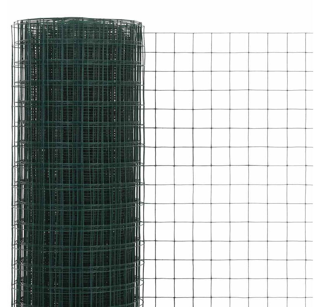 Plasă de sârmă găini, verde, 10 x 0,5 m, oțel cu înveliș PVC