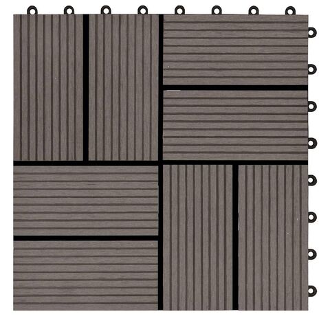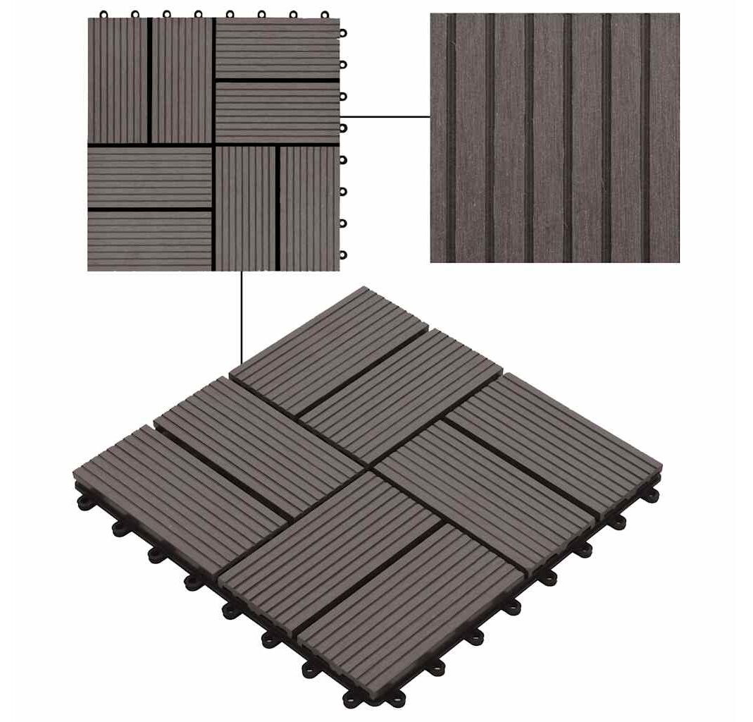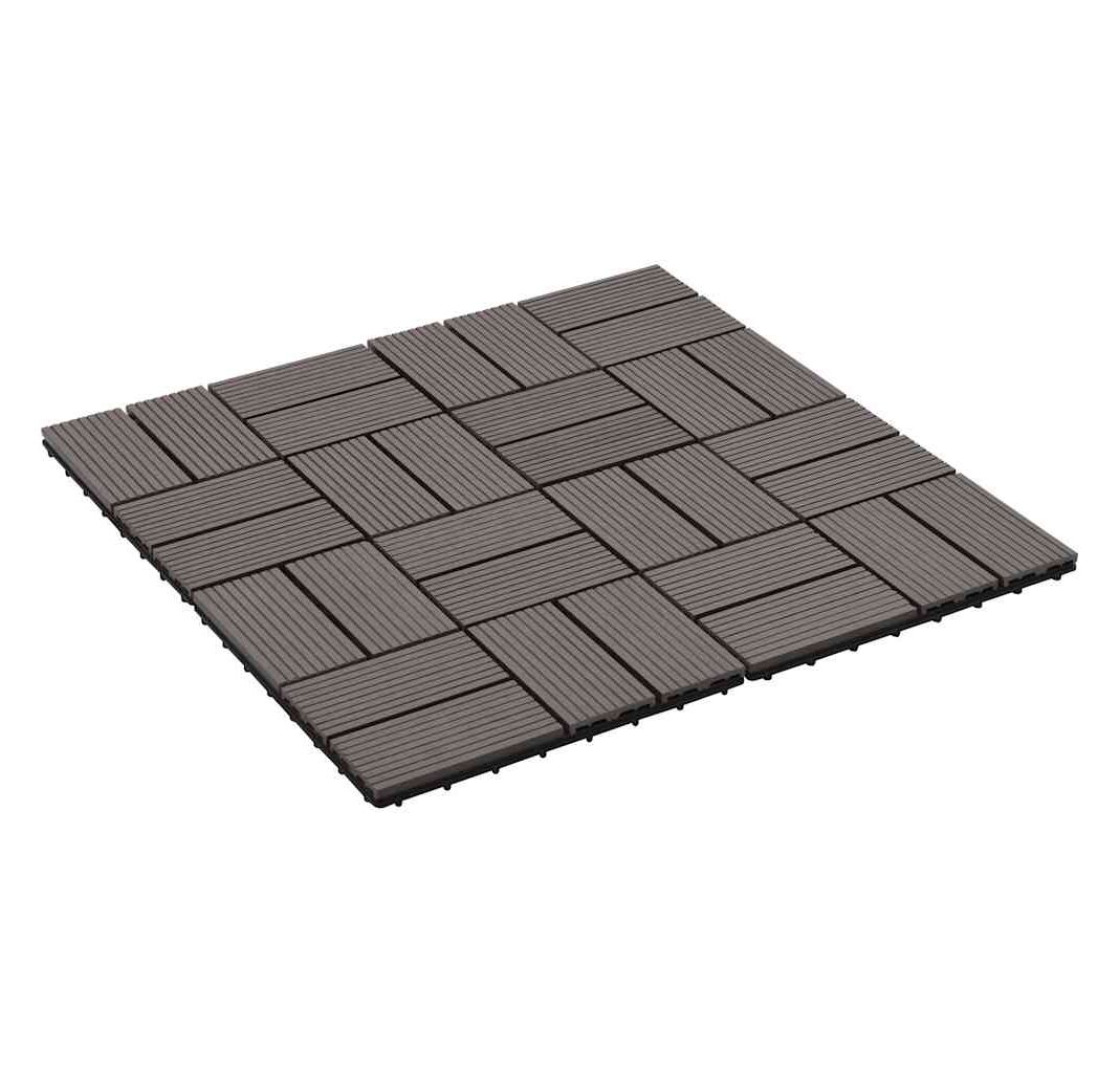 Setul nostru de plăci de pardoseală din WPC (lemn compozit), cu dimensiuni ale plăcii de 30 x 30 cm, este format din 11 bucăți și va acoperi o suprafață totală de 1 metru pătrat. Acest set va fi perfect pentru terasă, balcon, baie, zona de la piscină sau de la spa.