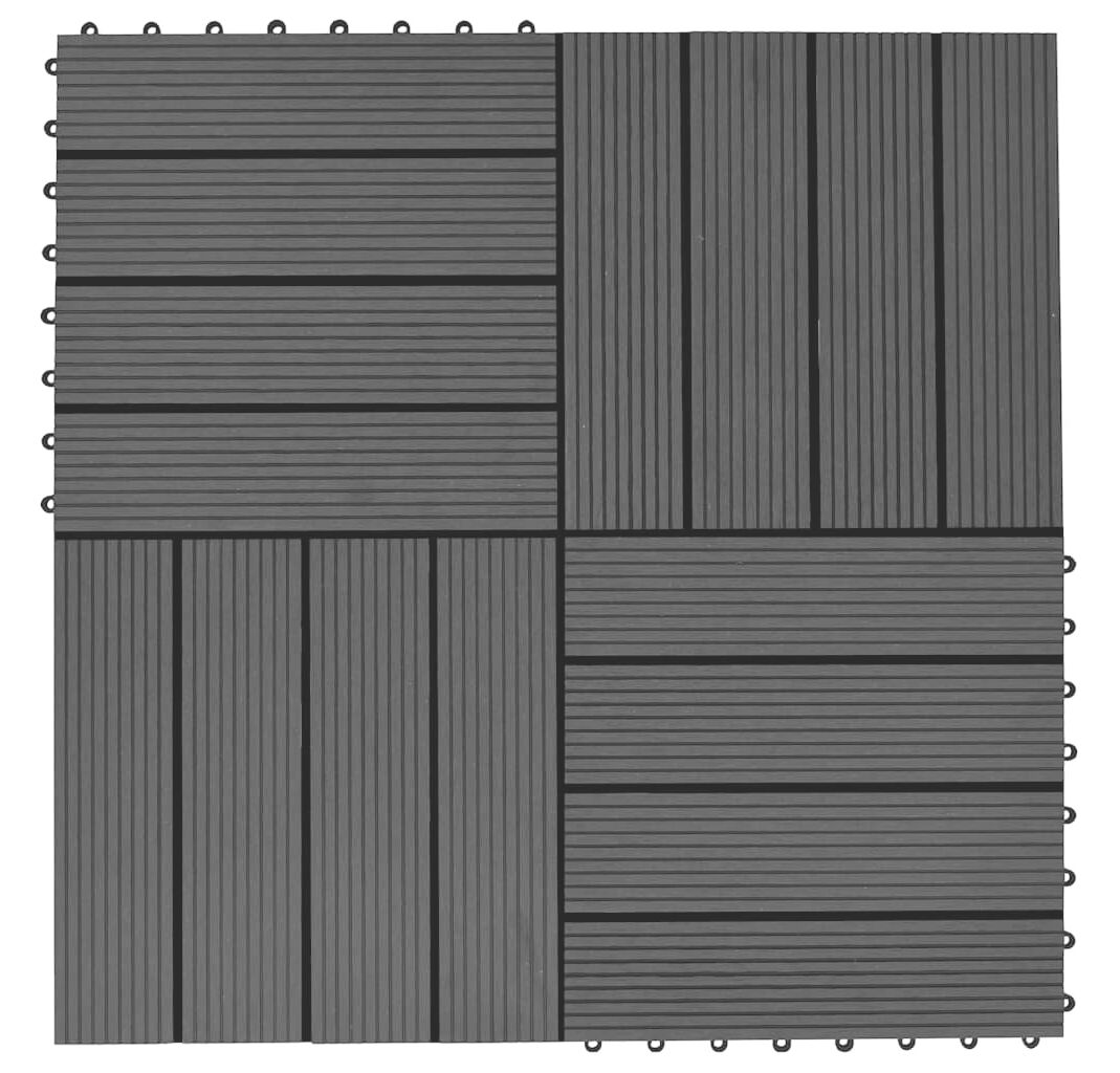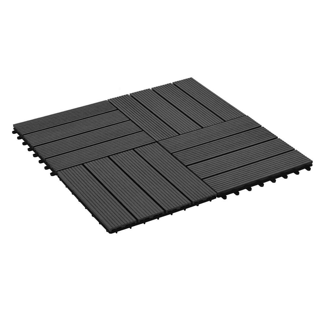 Setul nostru de plăci de pardoseală din WPC (lemn compozit), cu dimensiuni ale plăcii de 30 x 30 cm, este format din 11 bucăți și va acoperi o suprafață totală de 1 metru pătrat. Acest set va fi perfect pentru terasă, balcon, baie, zona de la piscină sau de la spa.