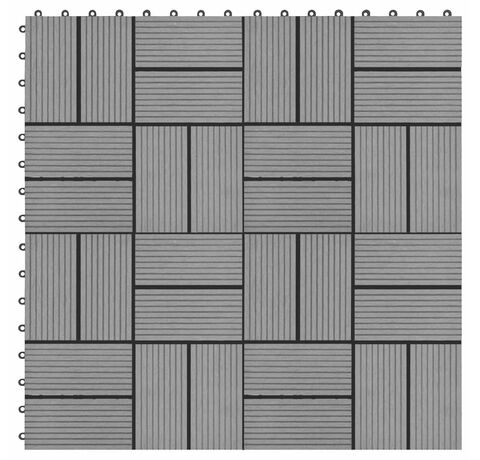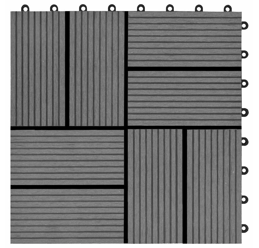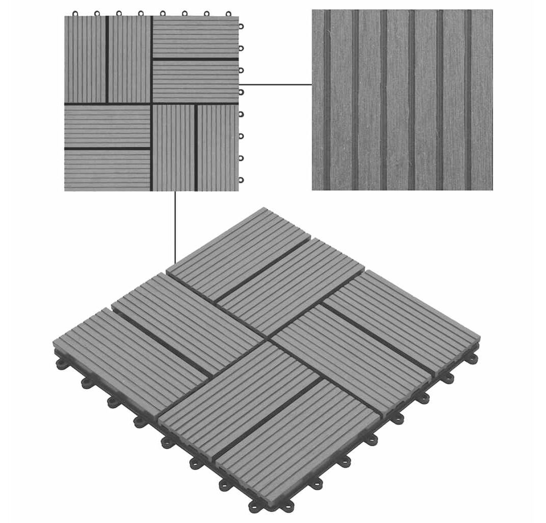 Setul nostru de plăci de pardoseală din WPC (lemn compozit), cu dimensiuni ale plăcii de 30 x 30 cm, include 22 bucăți și va acoperi o suprafață totală de 2 metri pătrați. Acest set va fi perfect pentru terasă, balcon, baie, zona de la piscină sau spa.