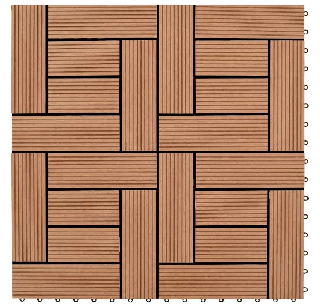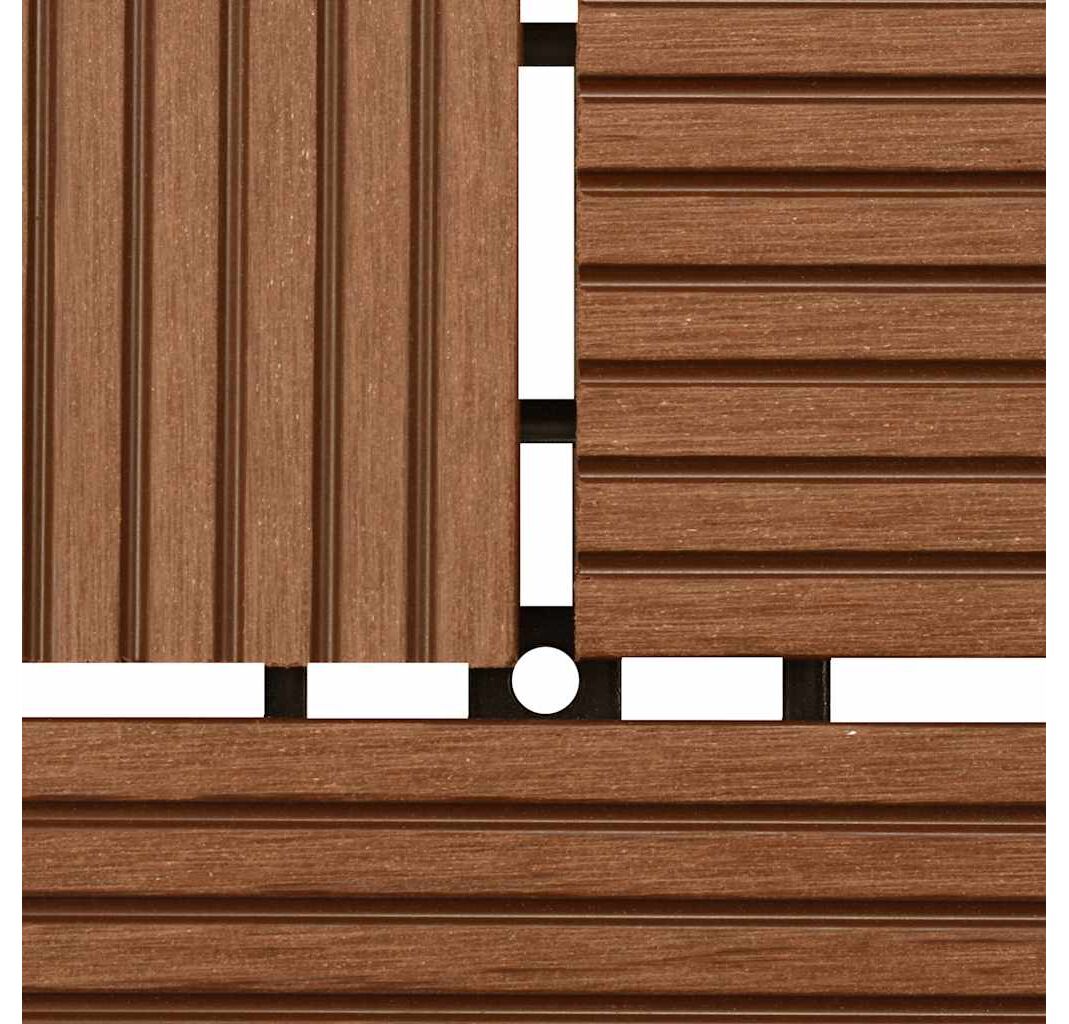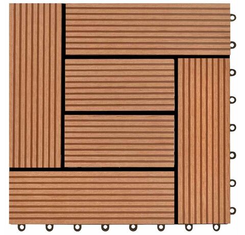 Setul nostru de plăci de pardoseală din WPC (lemn compozit), cu dimensiuni ale plăcii de 30 x 30 cm, este format din 22 bucăți și va acoperi o suprafață totală de 2 metri pătrați. Acest set va fi perfect pentru terasă, balcon, baie, zona de la piscină sau spa.