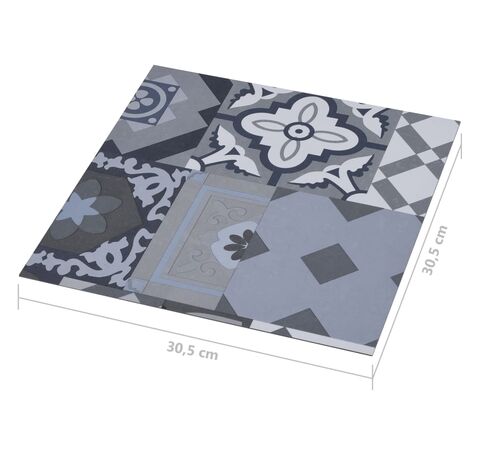 Setul de plăci autoadezive pentru pardoseală, din PVC de calitate superioară, este format din 20 de plăci, fiecare având dimensiuni de 30,5 x 30,5 cm și acoperind o suprafață totală de 1,86 m².