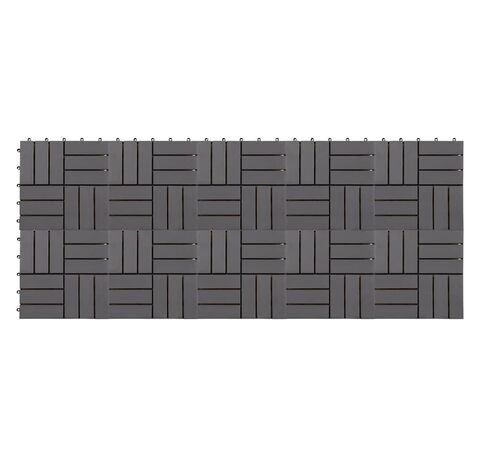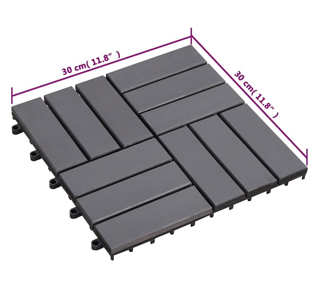 Acest set de 10 plăci de pardoseală din lemn de esență tare este perfect pentru decorarea suprafețelor sau pasarelelor în grădina dvs, pe terasă, balcon sau în orice altă cameră. Modelul nu este doar decorativ, ci are și calități antiderapante. Plăcile de pardoseală sunt confecționate din lemn de acacia de înaltă calitate, un lemn tropical de esență tare, fiind cu siguranță rezistent la intemperii și foarte durabil. Datorită conexiunii de tip plug-in, plăcile pot fi montate ușor și ferm, pentru a forma suprafața de pardoseală.